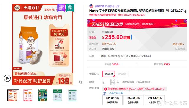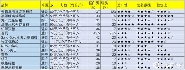 本内容来源于@什么值得买APP,观点仅代表作者本人 |作者:胡侃侃 创作立场声明:胡侃侃原创,首发在【侃侃而谈】系列。这篇侃侃教大家在双十一大促的时候如何选择囤什么品牌的猫粮, 如果你不清楚, 还可以在评论区给我留言, 侃侃会知无不言言无不尽。欢迎收藏, 点赞, 关注三连。 【第一步, 先关注我】 大家好, 我是胡侃侃。 前言双十一咱们猫粮囤好了吗? 前面已经好几波囤货了吧, 我这篇可能来的有点晚, 但是如果大家关注我的话, 知道我日常会告诉大家如何购买宠物粮。 如果大家是新手, 建议看看, 双十一要测试已经来不及了, 双十一正确操作就是囤粮, 一直囤够到过年年末大促甚至到明年的大促。 ![]() 开局一张图,全文4千字, 懒得看的可以直接看图, 一目了然。 喜欢就不要错过, 关注胡侃侃值得买账号——胡侃侃 囤什么牌子的猫粮?![]() 嘉蓝猫粮采用食品级别鲜鸡肉, 主要原料为三文鱼和鸡肉, 嘉蓝全部蛋白里面标称,动物蛋白含量高达95%。 嘉蓝猫粮是小分子肽猫粮, 强力防止软便, 有软便的猫咪可以试试这个产品。 而且嘉蓝里面具备8%的三文鱼肉和三文鱼油, 这边全部来自深海鱼类, Omega3, EPA, DHA等不饱和脂肪酸也是目前膨化粮中最高的之一。 而且嘉蓝猫粮普遍反映就是适口性很好, ![]() 产地:加拿大。主要原料:鸡肉、火鸡肉、全蛋、鸡肝、比目鱼。以肉类为主,肉含量非常高,搭配少量果蔬和植物,营养均衡。价格高。 ![]() 粗蛋白36%, 粗脂肪17%。 鱼肉为主要动物肉源来源, 豌豆做为主要淀粉来源, 进口。 ![]() 百利猫粮的包装(材质、封口)可能采用的是那种环保材质,透明材质, 比较薄, 透光, 这种材质相对于传统的铝箔包装来说, 阻隔性要差一点, 所以总会有百利猫粮有虫的报道, 因为路程遥远, 贮存对于包装隔绝性能要求非常高。 ![]() ![]() 作为北美进口猫粮,这款猫粮中主要的动物蛋白质来源于鸡肉粉。原料组成:鸡肉粉, 土豆, 菜籽油, 豌豆, 鸡肉。 ![]() 不过由于肉类相对单一,矿物质含量并不高。同时,豆类比较多, 植物蛋白比重较大,加之土豆中碳水化合物较多,所以猫粮颗粒比较油,配方中几乎完全用植物油脂取代动物油脂。 法明娜猫粮双十一价格:叠加88VIP,5kg, 555元。 ![]() 最近挺火的一款新晋品牌猫粮, 意大利进口。营销方面做的特别好, 大促期间基本所有的主要宠物粮渠道都可以看的到, 直播, 公众号等等。 线上线下也卖的特别好, 法明娜最近提供了几款新的配方, 全部蛋白里面标称, 其中动物来源的蛋白占比92%。 ![]() 举例的这个产品配方以鲱鱼为主, 其中鲱鱼肉是32%。 脱水鲱鱼为30%。 红薯是这款粮主要的碳水化合物的来源。 ![]() 鱼肉占比使用量高达62%这个配方还是相当不错的了。 普遍反映这款产品的适口性不错。 唯一的问题就是, 高蛋白的粮注意软便的风险。 ![]() 美国品牌进口猫粮, 为数不多的添加鸡肉奶糕的猫粮。 普遍反映适口性还可以。 ![]() 从配方上面看, Nurto配方书写方面相对标准, 但是不合规的就是没有标注配方鸡肉和鸡肉粉的占比。 ![]() 而且也使用了碎米, 糙米, 蛋白粉这样的配料。 产品符合AAFCO标准, 美国进口的对于原料方面还是有保证的。 ![]() 领先双十一价格:8kg, 339元。 枫趣猫粮双十一价格:5kg, 384元。 佩玛思特猫粮双十一价格:叠加88vip会员,10kg, 281元。 总结结尾一张图, 懒得看的可以直接看图, 一目了然。 往期好文推荐![]() |