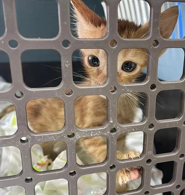 据发现小猫的当事人描述,小猫和兄弟姐妹被发现在公园里,猫妈妈不知所踪,它瘦得皮包骨,是这窝小猫中唯一的幸存者。