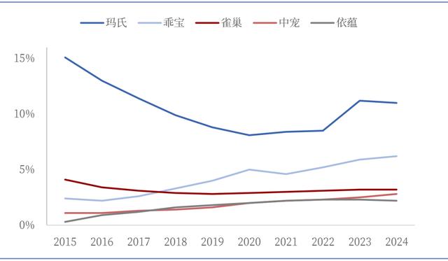 宠物经济,也被称为“它经济”,是指围绕宠物全生命周期产生的各类经济活动总和,涵盖宠物食品、用品、医疗、服务、娱乐等多个领域。 一、驱动因素1.宏观层面核心驱动因素图表1:宏观层面看宠物经济,五大核心因素 ![]() 来源:公开资料收集,毕马威分析 二、宠物经济行业分析宠物行业涉及到宠物食品、宠物用品、宠物医疗和宠物服务等行业。 图表4:宠物经济产业链 ![]() 资料来源:《2025宠物行业白皮书》,华西证券研究所 1.我国宠物食品市场分析我国宠物食品市场集中度较低,高成长龙头有望推动行业整合。我国宠物食品行业尚处于早期发展阶段,竞争格局相对分散,高端市场主要由进口品牌占据,国产品牌持续发力中。根据欧容数据,2023年我国宠物食品市场CR5、CR10分别为25%、31%,远低于全球60%、66%的水平。 图表7:2014-2023年中国(左图)和全球(右图)宠物食品市场集中度 ![]() 资料来源:欧睿passport,中国银河证券研究院 2024年我国宠物食品Top5中有2家进口品牌(玛氏、雀巢),以及3家国产品牌(乖宝宠物、依蕴宠物、中宠股份)。国内宠物食品企业多数自海外代工起家,但近年考虑国外成熟市场需求增长有限、部分国家出口限制政策等影响,以及国内宠物食品行业高成长、潜力较大等因素,国内企业纷纷发力自有品牌,抢占国内市场份额。根据欧容passport数据,国产龙头品牌市占率均有不同程度的提升,例如乖宝宠物、中宠股份、依蕴宠物市占率均呈现提升趋势。 图表8:2014-2024年中国宠物食品中玛氏、乖宝、雀巢、中宠、依蕴市占率变化情况 ![]() 资料来源:Euromonitor,中国银河证券研究院 图表9:2024年中国宠物食品市场公司(左图)与品牌(右图)格局 ![]() 资料来源:艾瑞咨询《2024年中国宠物行业研究报告》,中国银行证券研究院 我国宠物疫苗市场目前仍主要由美国礼来、硕腾、荷兰英特威等外资企业主导。2021-2023年我国宠物疫苗使用率top5品牌均为外资背景,其中硕腾的“妙三多”疫苗处于绝对领先地位。而国产疫苗由于发展时间较短,市场推广及接受度处于提升过程中,且目前国内注册产品主要集中在犬用领域。 3.我国宠物用品市场分析宠物用品行业主要涵盖牵引用具、清洁护理、宠物窝垫、食用器皿、宠物服饰和玩具等多个细分品类。从全球市场来看,根据欧睿数据显示,2022年全球宠物用品市场规模同比增长10.7%至447.6亿美元,2019-2021年间增速逐年提升,预计2021-2025年年均复合增长率(CAGR)将达到7.0%。在国内市场,近年来宠物用品行业规模持续增长,2023年市场规模达到407.0亿元,同比增长10.3%,细分领域表现各异。 我国宠物用品行业上市公司主要为依依股份、源飞宠物、天元宠物、朝云集团、健合集团。其中,依依股份是宠物护理用品龙头。源飞股份是宠物牵引用具龙头。天元宠物是全品类、大规模的综合型宠物产品提供商。 三、相关标的详见:宠物经济核心标的 参考资料 宠物食品行业深度:市场空间、产业机遇、产业链及相关企业深度梳理,微信公众号慧博资讯宠物经济深度:驱动因素、行业机遇、产业链及相关公司深度梳理,微信公众号慧博资讯毕马威-2025年中国宠物行业市场报告20250519-银河证券-全球多维度比较研究之宠物蓝海机遇20250527-华西证券-宠物行业深度报告:宠物经济支出稳步提升,看好宠物服务板块宠物经济,韭研公社产业库,韭研公社 |