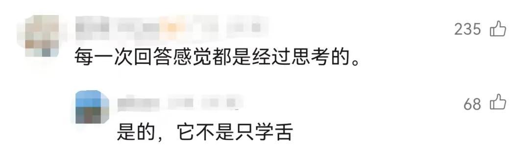 近日,藏在贵州深山里的凯里动物园,凭“难找”爆火出圈。几位记者在探访动物园时,被一只鹦鹉逗乐了。面对记者的采访,它对答如流,甚至还会反问。 ![]() 见到女记者,鹦鹉先是客气地打了招呼,“你好呀!”随后问:“你是谁?” 女记者答:“我是来采访你的。这么多人喜欢你,你有什么感受?" 鹦鹉歪了歪头,来了一句:“没感受啊。” 另一位男记者问鹦鹉:“我长得帅不帅?”鹦鹉愣了一会,之后答:“你好帅啊。” ![]() 网友评论看完鹦鹉被采访视频,网友们也乐了。有网友表示,爱唠嗑的鹦鹉太可爱,“它是不是因为说太多话,所以变成了烟嗓?”有网友打趣,记者和鹦鹉,“一个敢问一个敢答。”有网友觉得,鹦鹉每一次回答,感觉都是经过思考,不只是学舌。还有网友调侃,“一看就是受过高等教育的鹦鹉。” ![]() ![]() ![]() 潮新闻·钱江晚报综合自贵州广播电视台-动静黔东南、@百姓关注、@天眼新闻、网友评论等 编辑:刘英銮 一审:徐杨 二审:孙瑞永 三审:管延会 来源:潮新闻 |