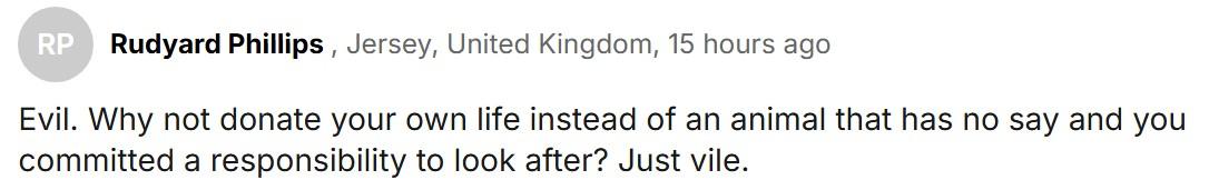 被关在动物园里的猛兽,假如能吃上连皮带骨的完整猎物,而不是经过处理的肉块,既可以获得更加丰富的营养,还可以满足咀嚼啃食等自然需求,模拟自然猎食行为。 这无疑是一件好事,相信也会得到广大游客的赞成。 可假如投喂猛兽的食物,变成了游客自家的宠物,这事的性质就变了…… ![]() (奥尔堡动物园的狮子) 最近,丹麦的奥尔堡动物园(Aalborg Zoo)就做出了这样一个有争议的决定。 园方在脸书上发帖,呼吁主人捐赠自家即将走向生命尽头的宠物,给园内的猛兽当饲料。 “如果您有一只健康的动物,因某种原因即将离开人世,欢迎捐赠给我们。这些动物将交由受过专业培训的工作人员,进行温和的安乐死,随后做成饲料。” “这样一来,既不会浪费生命,又能确保我们的猛兽表现出自然行为,获得所需的营养,并维持良好的生活状态。” 该园的官网上显示,园内饲养的食肉动物包括狮子、老虎以及猞猁等。而他们主要接受的捐赠对象,包括豚鼠、兔子、鸡以及活马。 ![]() (来自dailymail评论区) “真邪恶啊。怎么不把自己的命捐出去,而要捐献一只你有责任照顾、却没有发言权的动物呢?简直恶劣至极。” ![]() (小长颈鹿Marius) 或许动物园的观念并没错,他们只把动物当动物,放在自然界里,死去的动物本身也会沦为食物。 可却忽略了一件事 —— 宠物承载的感情不同,主人会更重视其个体权利,以及死亡的意义。 从这个角度看,众人会如此激动地反对,也是可以理解的… |