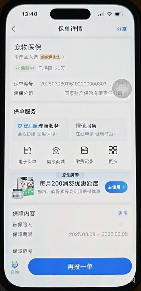 来源:央广网 央广网福州7月25日消息(记者张子剑)日前,福建省漳州市的消费者方女士向央广网啄木鸟消费者投诉平台反映,她于今年3月8日在某知名网络平台上为宠物狗“小二”购买了一份“宠物医保”,承保公司为国泰财产保险有限公司。6月25日,她发现“‘小二’精神状态不好”,前往保险指定医院检查,确诊宠物患有肿瘤,并于次日接受了手术。但她找到保险公司理赔时,却被拒绝了。 ![]() 方女士的购买记录(央广网发 柳先生供图) 宠物狗长肿瘤 患病时间成保险公司拒赔理由 投诉人方女士的儿子柳先生告诉记者,今年3月8日,他的母亲在某知名网络平台上,购买了一份“宠物医保”保险,为其宠物狗“小二”投保,承保单位国泰财产保险有限公司出具的保单上有这样一句话:“本产品组合整体等待期意外10天,肿瘤和口腔疾病60天,其他疾病30天”。 投保后,6月中旬,方女士发现“小二”腿部有肿物。6月25日,发现“‘小二’精神状态不好”,于是前往保险公司指定的医院接受检查,发现“小二”左后肢腿部有面积为6*5cm的肿瘤。次日“小二”动了手术,支付医疗费用共计2133元。 术后,方女士找国泰财产保险有限公司理赔,被公司客服以“等待期结束前就有疾病或症状,等待期后就诊,保险公司不承担保险责任”为由拒绝。 可柳先生认为,按照保险公司自己注明的要求,肿瘤保险的“等待期”已于5月8日结束,而“小二”的发病是在6月下旬,保险公司应赔付“小二”就医自费的全额费用。 在之后的沟通中,保险公司客服又向柳先生回复称:“根据肿物形成的时间来判断,一个月时间无法生长到如此大小,所以判定是在等待期之内产生的疾病和症状。” 但柳先生认为,这个评判没有依据,“这种病谁能预料到。” 患病时间难认定 保险公司给予消费者退还保费并补偿 从柳先生所反映的情况来看,消费者与保险公司争议的焦点在于“小二”的患病时间。 柳先生说,反复交涉后的7月11日,保险公司表示可以全额退还已缴纳5个月的保费,共计365元,另外补偿200元“关爱金”。 7月12日,记者联系了国泰财产保险有限公司的客服热线,相关负责人回答了记者的提问。 为何拒赔?国泰产险相关负责人答复称,按照“小二”手术的医院医生给出的医学意见,依照医学推理原则进行合理推测,认为“小二”发病时间应在“等待期”结束之前,因此予以拒赔。而后又为何给予退费及补偿呢?该负责人称:是希望“跟客户有个好的沟通”。 保险公司为何未在购保时确认宠物的身体情况呢?这位负责人表示,在投保前,已严格履行告知义务,在“投保须知”中,对宠物身体等有重要影响的内容进行加粗加黑提示,客户可以在充分理解的基础上做出理性决策。“该产品保费低、利润低,销售的决策路径就很短。”这位负责人还表示:“也正因为便宜,所以很多东西的判定就需要消费者自己来。” 那么,在购买宠物保险前,主人能否自费到正规宠物医院给宠物做体检并出具体检报告,以确定宠物的健康情况呢?保险公司相关负责人称,公司认可非定点医疗机构出具的真实证明,但需提供该医疗机构资质证明材料。 此外,根据《国家金融监督管理总局关于加强和改进互联网财产保险业务监管有关事项的通知》,“财产保险公司开展互联网财产保险业务,应严格区分线上业务与线上线下融合业务”。而方女士所购产品的保单上并未明确标注为线上销售。如此,国泰财产保险有限公司的销售行为是否违规?该负责人回应称:《通知》适用于人身险业务,而方女士所购为宠物医疗保险,所以无需特别注明。 ![]() 方女士购买的宠物保险保单(央广网发 柳先生供图) 涉事双方都觉得“冤” 谁对谁错难分辨 保险公司表示可以退还保费,并额外补偿200元“关爱金”后,方女士接受了这一解决方案,柳先生则表示“只能认了”。 而对于记者“保险公司是否有意模糊保险条款、降低购买门槛以最大程度获客?”的问题,保险公司上述相关负责人称,以此案为例,本单即已亏损,“亏本的事情难道会有意去做吗?” 从以上情况不难看出,此事中,消费者与保险公司,都觉得自己很“冤”。 对于方女士和柳先生的遭遇,广东矩力律师事务所高级合伙人史振杰律师认为,“小二”的肿瘤是否在“等待期”内患病,需以医疗鉴定为准。但从肿瘤的大小上看,不太可能在短期内就发展到需要手术治疗的地步,从保险条款来看,保险公司拒赔似乎并无不妥。消费者在遇到此类事件时,可以通过法律途径维护自身权益。标的在5万元以内的案件,人民法院设有速裁法庭,能快速息诉,为当事人解决诉求。 宠物保险纠纷频发 引发争议是常见现象 虽然双方纠纷已告一段落,但其背后的争议点仍值得探究。为此,连日来,央广网记者走访调查发现,这一消费事件的背后,折射出宠物保险市场的混乱,引发争议纠纷是常见现象。 在看了“小二”的治疗情况和切除出的肿瘤及生长部位的照片后,福州市一家知名老牌宠物医院院长说:“从肿瘤的生长机制来看,通常是一个渐进的过程;但如果是炎症,也有可能几天之内就发病。肿瘤类型很多,有的长得快,有的长得慢,比如急性的肿瘤就有可能长得快。未经医学鉴定,也不好下结论。” “依照上述案例,也有可能已经长了很久,但主人一直没发现。”该院长表示:“很难评判纠纷双方孰是孰非。” 类似难于判定的宠物保险纠纷,在