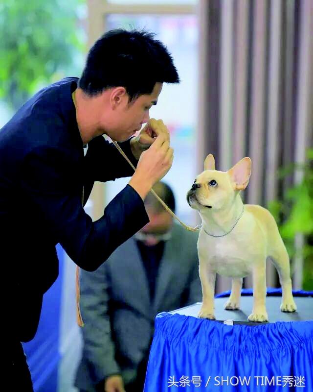 虎斑色的“Alex”。摄影/建设祖国 2.为什么用“新颖”来命名自己的犬舍?有什么讲究吗? “新颖”这个名字是延续了我父亲早年间开设的服装店铺的名字。我父亲80年代开始做裁缝,在当地也小有名气,到90代初开始被流水线的服装生产代替纯手工制作而结业。当时我自己说过只要我将来有自己的事业,就会延用这个名字来做自己的品牌! 3.除了法国斗牛犬以外,你是否还繁殖其它犬种?如果有的话,请详细介绍一下。 我之前几年也有繁殖过贵宾犬,那时候主要迎合市场,谈不上专业,没有太多血统上的研究!没有花太多的心思在上面。 4.你是因为自己喜欢法国斗牛犬,还是因为这个犬种现在非常修行,价格被炒得很高,才繁殖这个犬种的? 我自己本身非常喜欢这个犬种,也是因为这个犬种让我一步步地走向专业。它憨厚的外观,大大的头部,充满好奇的眼睛,圆滚滚的身体,憨态可掬的滚动式步态类型,还有那独特的蝙蝠耳,都是我爱上它的理由。 本身这个犬种起步点高,现在已经过了炒作的时期。希望这个犬种能健康的发展,从我做起!我也希望通过自己的学习,对犬种标准的理解,繁殖出符合犬种标准,具备正确类型的法国斗牛犬。