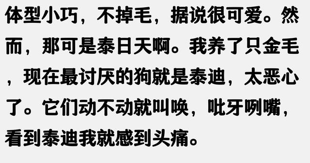 刷到是缘分,感谢大家的阅读,希望您能动动小手帮忙点赞,关注,评论。你的支持和鼓励是我前进的动力。在此祝福大家天天快乐,日日开心! r01 r r02 r我妈家养的是流浪泰迪,有体味,然后老人养也很少给它梳毛,所以导致天热一剪毛就差不多是剃光的样子,在家里,如果门外有人上下楼,就会对门口叫,有时也会发个神经对着空气叫,儿子给它起外号叫泡面头,我自己家养的是柯基,现在多了个土狗仔,狗仔天天都挨柯基舔得像芒果核,反而它倒是没有体味,老祖宗严选 r03 r r04 r养小型犬主要由中国国情决定,中国城市人口稠密并住房普遍偏小,无养大狗条件,二是中国人与欧美国家相比收入普遍偏低,养小犬相对经济压力小些。并非国人偏爱小犬 r05 r r06 r便宜、吃的少、不掉毛、体型小、方便携带,还可打扮,这些特点让泰迪和比熊成为超棒的宠物犬。看了看我的拉布拉多,不禁流下了眼泪。 r07 r r08 r我妹妹养了两只泰迪,都挺乖的,也不乱叫,也没发现有什么不雅的动作。不知道为啥网上都骂 r09 r r10 r疫情期间,孩子们关在家里,三个月大的时候带他回家的。r聪明,不掉毛,没有体味,不流口水,吃的又少,饲养成本低,活动量小,不需要特别的去遛。r每天回家到门口迎接你,你坐在那里看电视,他就在旁边安安静静陪着你,实在无聊了就用爪子扒拉扒拉你希望你陪他一起玩一会儿。r小时候给予一定的社会性锻炼,见到其他狗子出门也不会乱叫,母的嘎掉了也不会出门乱日。r这只唯一没调教好的就是饮食方面,小时候没管理好,不吃素只吃荤,好在狗粮还是会吃。 r11 r r16 r我家泰迪从来没有抱过人的大腿,没干过不雅的事情。就是楼道有动静会叫,其他的都很乖。 r17 r r18 r我家泰迪朋友送的,本来想养个比熊或者科基,现在是泰迪唯粉了,聪明,个小,不掉毛,一口饭就吃饱了,还会定点,太省心了 r欢迎留言讨论呢感谢各位看官的阅读,祝看到这里的你天天开心,顺风顺水发大财 r别忘了点赞关注哦~我们评论区见 |