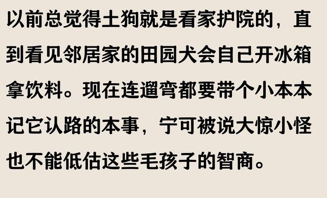 ![]() 03 邻居家大黄会开防盗门,有次把整栋楼的流浪狗都带进楼道避雨。第二天保洁阿姨看着满走廊的泥爪印,气得举着拖把追了三条街。 04 ![]() 05 老家养了只大黄,每次我骑电动车出门它都跟着跑。有次故意绕远路想甩掉它,结果这货抄近道在村口等我。后来发现它把全村的小路都记熟了,连哪家墙头能跳都知道。现在送快递的小哥都找它带路,狗子混得比我还熟门熟路。 06 ![]() 09 我家狗子会自己开冰箱偷香肠,被发现就装睡,演技比某些小鲜肉强多了。 10 ![]() 11 老家有只大黄狗,能记住全村三百多人的脚步声。隔壁二婶每次来串门都走西边小路,有次她改道从东边田埂过来,狗子愣是对着空气狂吠了半小时。后来发现是二婶换了双新胶鞋。 12 ![]() 大家对这件事怎么看? 欢迎在评论区留言讨论。 ![]() |