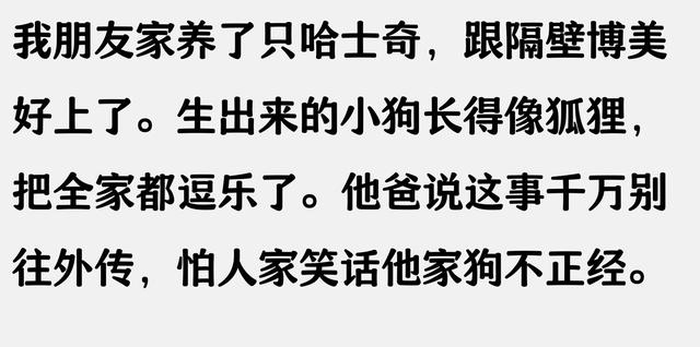 走过路过不要错过今日精彩话题,感谢大家的阅览,希望能获得您的 点赞 关注 评论 小编在此先祝大家天天开心,日进斗金!年年快乐! 我家那哈士奇二哈,整天跟隔壁老王家的博美眉来眼去。那天我下班回家,看见它俩在院子里腻歪,二哈那傻样儿,舌头耷拉老长,博美那小短腿蹦跶得可欢实了。三个月后博美生了,我蹲在产房边上数:一、二、三...第五只崽子钻出来的时候我傻眼了!这尖嘴猴腮的,毛色火红火红的,活脱脱就是只小狐狸!老王在旁边直搓手,说这崽子值钱了,肯定能卖个好价钱。 我抱着这小东西左看右看,它那对三角眼滴溜溜转,尾巴跟个鸡毛掸子似的。二哈在旁边急得直转圈,想凑过来闻又不敢,那怂样儿... 01 ![]() 02 这得看品种啊 纯种哈士奇配博美 生出来个四不像 这是真爱吗?换位思考 要是你是狗主人 花大价钱配种生个串串 你会咋想? 03 ![]() 04 我家二哈和邻居家博美偷偷好上了,生出来的崽长得跟狐狸似的,现在天天被小区大爷大妈围观,说这是新品种"狐狗",笑死我了 05 ![]() 06 我家二哈之前也这样,跟隔壁泰迪好上了,生出来的崽长得跟个毛绒玩具似的,邻居都说这狗子太会遗传了,专挑爸妈的优点长。 07 ![]() 10 整天说跨品种恋爱不靠谱的都是没见过真爱的,我家哈士奇和博美处得可好了。刚开始还担心生出来的崽子会四不像,结果这小狐狸样可爱死了,天天在家上蹿下跳的,比纯种狗活泼多了。 这狗血剧情,连编剧都不敢这么写! 对于本期话题,你有什么想说的吗? 评论区一起聊聊吧 别忘了点赞关注哦~ |