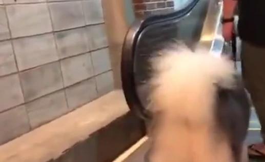 相信很多狗狗都有自己害怕的东西,有的害怕火,有的害怕光,每一个都有自己害怕的东西,而阿拉斯加蓓蓓害怕坐电梯,走到了电梯自己就站住了。