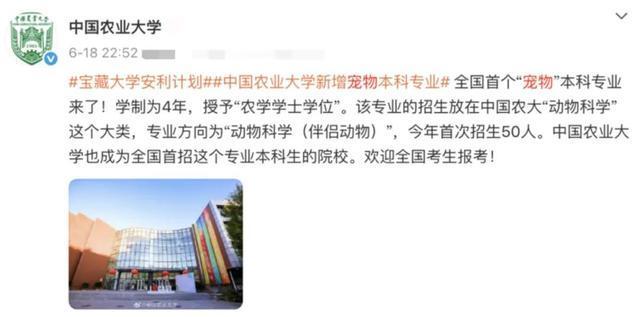 高考结束后,考生们马上又要迎来一轮新“战斗”——志愿填报。近日,中国农业大学动物科技学院的老师们就开始新一轮的本科招生宣讲,其中,他们介绍的全国首个“宠物”本科专业,引起网友广泛关注。 这个全新的专业课程设置如何?就业前景又怎样?一起了解↓ 01 什么是“宠物”本科专业? 招多少人? 该专业的招生放在中国农大“动物科学”大类下,专业方向为“动物科学(伴侣动物)”,专业代码090301,学制4年,毕业生将被授予“农学学士学位”。 ![]() 动物科技学院负责招生工作的副院长刘国世介绍,动物科学(伴侣动物)是紧密围绕产业高质量发展需求,覆盖伴侣动物品种培育、营养代谢、饲料加工、繁殖生理、福利与行为等课程的新兴专业。 “‘伴侣动物’是一类能够和人生活在一起、进行亲密沟通和相互情感交流、能够给人们带来生活快乐的宠物,人们更愿意把这个专业形象地称为‘宠物’专业。”刘国世解释说。 此前,中国农业大学曾宣布今年将扩招本科生500人。其中的50人,就用于招收“宠物”本科专业,他们将被分成两个班,第一年在北京市海淀区中国农业大学本部学习;后面三年转到位于山东烟台的中国农业大学烟台研究院学习。 ![]() △中国农业大学烟台校区 02 核心课程学什么? “宠物”专业和“兽医”有何不同? 新设置的伴侣动物方向,与该学校此前已经招生的动物科学专业有何不同? 中国农业大学动物科学技术学院一名工作人员介绍,伴侣动物方向所学内容聚焦在伴侣动物如猫、狗、马等动物方面,而动物科学主要聚焦在猪、鸡、牛、羊等家畜方面。“动物科学专业毕业生可以进入遗传育种、营养饲料、繁殖育种、智能养殖等领域工作,而伴侣动物方向可能会更优先进入和宠物相关的企业以及马术俱乐部等。” ![]() △动物科学(伴侣动物方向)介绍(《中国农业大学2025年本科招生专业介绍》截图) 那么,“宠物”专业的核心课程如何设置? “宠物”专业的课程可以概括为:宠物营养与食品、宠物繁殖与育种、宠物行为学、宠物护理等。也即,大体是围绕“汪星人”“喵星人”的产业需求展开的。 具体来看,可以细化为:伴侣动物营养学、伴侣动物遗传与育种学、伴侣动物繁殖学、饲料质量评定与安全检测、宠物驯养与护理、犬猫行为学、宠物美容与健康、宠物饲料加工工艺、马术与马文化、赛马概论、智能养殖技术与应用等。 ![]() △中国农业大学动物科技学院学生在上课 03 就业前景怎么样? 谈到这个新专业的设置,刘国世表示其与市场需求息息相关。“本专业聚焦城市化进程中伴侣动物(如犬、猫、马等)产业快速发展的人才需求,培养兼具畜牧科技基础与伴侣动物领域产业创新能力的交叉型、复合型人才。” 相关研究表明,2024年中国宠物消费市场规模已突破3000亿元,近十年复合增长率11.9%,显著高于美日等成熟市场,并且呈现食品主导(占比52.8%)、医疗增速加快(13.9%)的格局。 ![]() 而在此之前,中国农业大学已经进行了“宠物”专业的相关尝试。 在烟台研究院,“宠物”专业方向的硕士研究生已连续招收了四届。在农大本部,名为“伴侣动物科学”的微专业作为辅修课(12.5学分共9门课程),已于两年前开设,深受欢迎。此外,学校还设立了“宠业新势力”人才培养平台,通过大量的第二课堂实践活动,高质量推进产学研结合。 另据了解,全国目前注册的宠物相关企业已超50万家。“宠物产业已成为畜牧学科新的增长点,急需大量具有伴侣动物科学知识背景的专业技术人才。”刘国世表示,“此外,高校和科研院所、动物诊疗机构、政府和产业相关管理部门和组织等,对宠物专业人才的需求量,也呈现稳步增长趋势。” 综合央视网、中国农业大学 来源: 山东省委政法委 |