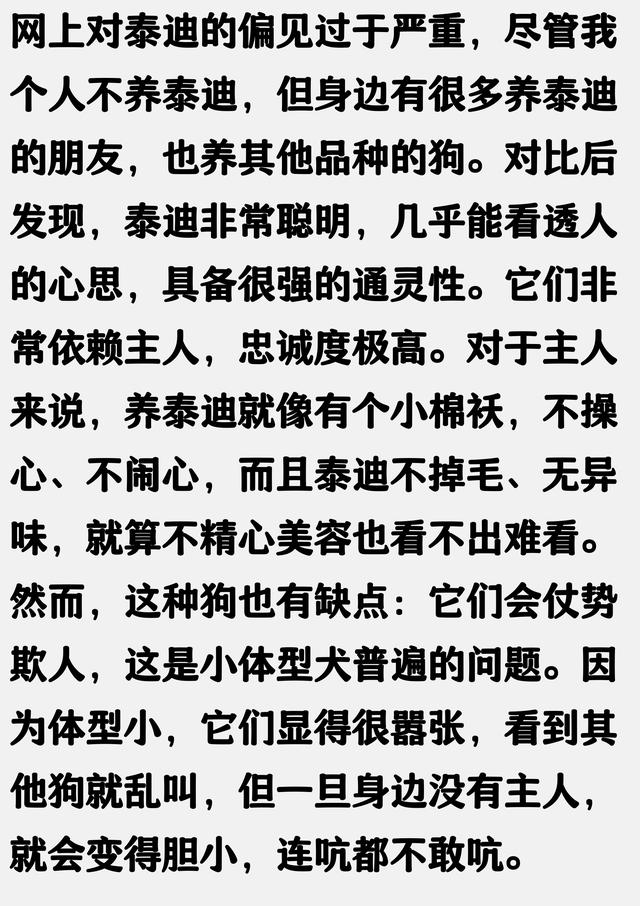 阅读此文之前,请点击一下“关注”,既方便您进行讨论和分享,又能每天给您带来不一样的故事,感谢您的支持,这厢有礼了~ r01 r有的人说泰迪丑。说他猥琐。其实这个骑跨行为在很多狗中都有的。母狗都有这个动作。至于丑。每个人的审美不同,我个人认为泰迪的长相很可爱的。其实泰迪最大的问题就是养的人太多了。所以有坏毛病的狗狗相对数量上多一点,因为它总量太大。有些其实也是主人没有教好。养的人多也是因为它的优点多。贵宾(泰迪是贵宾的一种造型)比熊雪纳瑞绝对是最适合城市饲养的宠物。吃的少,拉的少,不掉毛没体味。体型小,没有攻击性。 r02 r r11 r什么人养什么狗狗的品行不好和品种没有关系,和主人的性格习惯品德有关系。 r12 r r13 r小型犬通病,易受惊,然后就攻击行为,原理跟杀人蜂似的,你没法预判哪些事会惊到它,尤其那种只会宠不会训的狗主。亲眼见过同小区俩狗照面要按祖上规矩“盘盘道”,年青女主人叫的比汽车喇叭还响说实话宁还是养猫吧 r14 r r15 r明人不说暗话,我是来给比格也洗个白,可爱的小比超级好,不爱叫的 r16 r r17 r我家泰迪从来没有抱过人的大腿,没干过不雅的事情。就是楼道有动静会叫,其他的都很乖。 r18 r r对于本期话题,你有什么想说的吗? r评论区一起聊聊吧 r别忘了点赞关注哦~ |