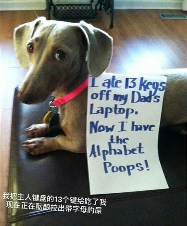 键盘好吃吗?长这么大第一次看见吃键盘的狗,还吃了13个?想问下这只狗,你肚子痛吗?