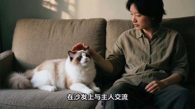 我家那只软萌可爱的布偶猫在沙发上与主人交流,喉咙里发出轻柔的咕噜声,像是在热切地和主人倾诉着什么。