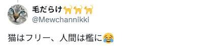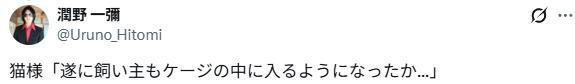 日本一位铲屎官的家里,养了3只都是1岁的猫咪:小咪、小酷和虎斑猫小波。 ![]() ![]() (截图来自日本网友@ak1k02319) “把人关在笼子里,哈哈。” ![]() (截图来自日本网友@check_sakana) “看起来人类进出厨房会很麻烦。” ![]() (截图来自日本网友@kaokaorin741) 猫咪心想:“所以现在终于是主人进笼子了。” ![]() (截图来自日本网友@Uruno_Hitomi) 铲屎官也忍不住笑了起来,自嘲道:“猫是自由的,人是被关起来的。” ![]() (截图来自日本网友@Mewchannikki) 看来想跟好奇心旺盛的猫咪和谐相处,并不容易啊… |