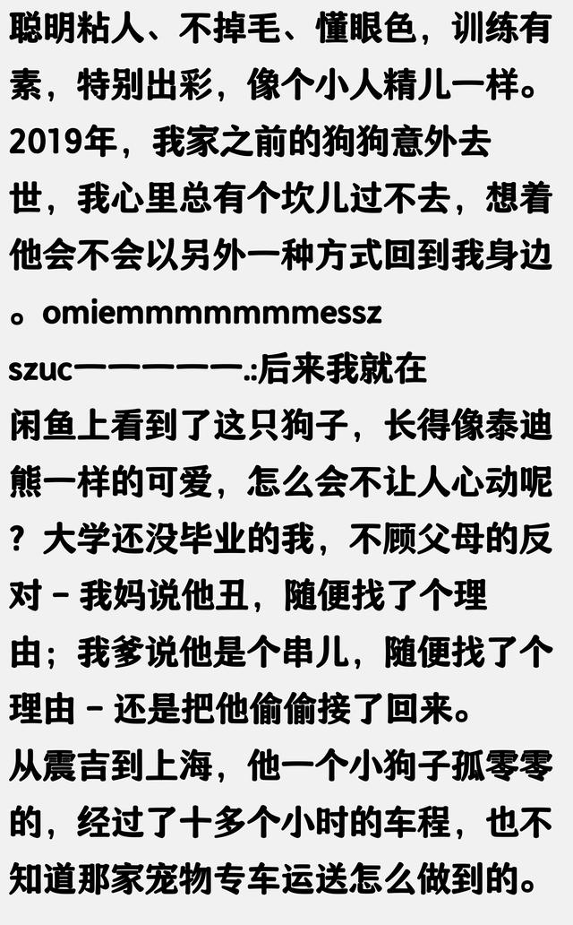 刷到是缘分,感谢大家的阅读,希望您能动动小手帮忙点赞,关注,评论。你的支持和鼓励是我前进的动力。在此祝福大家天天快乐,日日开心! r01 r r02 r我还真没见过乱叫的泰迪,我的初衷是养只大狗,后面感觉不行,吃的多拉的多,洗澡也费钱掉毛严重体味重,流口水想想带它出门要捡狗屎,那么大的狗拉一次一把抓不完想想都上头r还是养个小体型的吧,出门好携带吃得少拉的少狗屎两张纸巾就捡了,自己在家也能给它洗澡,运动量也小,后期费用不大 r03 r r08 r嘿嘿 我家的 11岁了 从两个月开始养的r就是个贼娃子但从来没有抱着人的腿或者对空气那样的 从没有 也不爱乱叫r就有时候楼道声音大的话会叫 邻居都说他很安静 平时都听不到声音 r09 r r10 r泰迪真的聪明。可惜我家的皮卡丘走了,现在还没找到合眼缘的泰迪。 r11 r r12 r为什么我养的泰迪几乎从来不叫?一天在家里也不叫,莫非我养了一只哑巴狗? r13 r r14 r网上对泰迪的偏见很大,但我不养泰迪,身边却有众多养泰迪的朋友。对比之下,我发现泰迪非常聪明,能看懂人的脸色,具备极强的通灵性。它们依赖主人,忠诚度高,对主人来说,养泰迪就像多了个小棉袄,不操心也不闹心,而且泰迪不掉毛,无异味,即便不常美容也不至于难看。然而,这种狗也有缺点:它们会狗仗人势,因为体型小,声势却很大,看见别的狗就乱叫,但一旦主人不在身边,就会夹着尾巴,不敢吭声。 r15 r r16 r不掉毛、无体臭、无显著遗传病、智商高、体型小巧、性格活泼、对人友好、运动量适中,非常适合新手,不娇气,饲养成本低。至于爬跨行为,母狗没有,公狗情况各异,且从小可进行教育。许多人误以为这是狗狗流氓行为,实则大错特错。狗的爬跨除了交配外,也是宣告地位的一种方式。狗的交配行为并非因其“僵大起”,而是其正常行为。动物的行为就像未吃禁果的亚当和夏娃,仅是吃饭拉屎般的普通行为,人类无需过度解读,更不应给狗狗强加莫须有的罪名。若您对此感到排斥,可以选择养小母狗,或者考虑饲养比熊,外形与贵宾相似。 r17 r r18 r我的泰迪爱干净,不掉毛,自己养成的习惯好,大小便自己必须到室外解决 r大家对这件事怎么看? r欢迎在评论区留言讨论。 |
