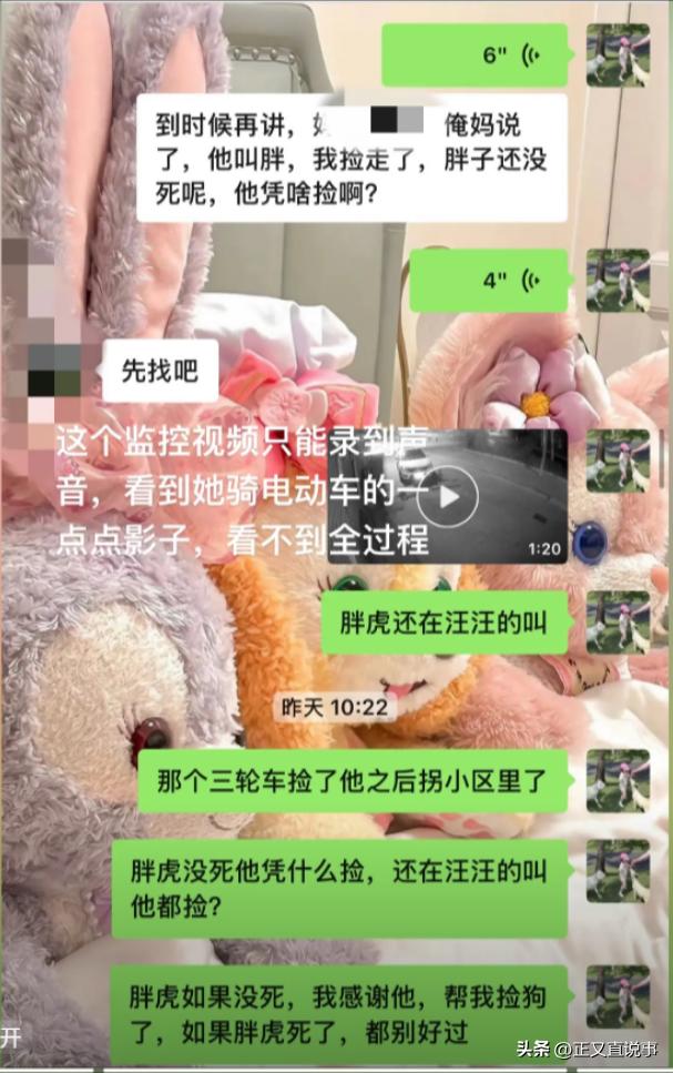 养了多年的宠物狗丢失,当找到时它已经被人宰杀好,还准备将它的肉吃掉,面对主人的质问,对方还冷血无情的说:“不就是一只狗,我捡到的我想怎样就怎样!” ![]() 6月4号午夜,小杨下班回家,在开门的一瞬间,胖虎突然冲出了家门,小杨因为手里还拿有东西,无法第一时间抓住它,导致胖虎成功跑出家门。 这可急坏了小杨,她当即拿上牵引绳,一边给朋友打电话,一边出门焦急寻找,直到凌晨两点,小杨和她的朋友也没有见到胖虎的踪迹。 ![]() 由于时间太晚,小杨的朋友便劝她先回家,等到第二天早上再说,可小杨依旧坚持,过了差不多没几分钟,小杨无意得知附近的路上,有人撞到了一只狗。 小杨听后连忙赶到事发地,等她到时地上只剩下了血迹,随即她将这件事告诉给了朋友,朋友见状也只能安慰她,说不准胖虎被好心人带走救治了。 ![]() 胖虎离开家后,脚步轻快地跑到了马路边,路上时不时有车辆经过,可能因为天黑,胖虎又突然跑到了马路上,司机一时不察,不小心撞到了胖虎。 司机刚要下车查看,一个女人骑着三轮的电动车慢慢悠悠的过来了,她看到胖虎躺在地上便上前查看,随后不久,女人将胖虎抱上车,拐进了附近的一个小区里。 ![]() 小杨根据监控,一路找到了女人工作的足疗店,通过对面商店的监控,看到胖虎被女人抱下车,带进了足疗店,随即小杨进了足疗店,从工作人员那里得知了女人家庭住址以及电话。 在6月5号中午十一点半小杨联系上了女人,她一边给女人打电话,一边往女人家赶,在电话里,她不止得知胖虎已经去世的消息,更得知了一个她不能接受的噩耗。 ![]() |