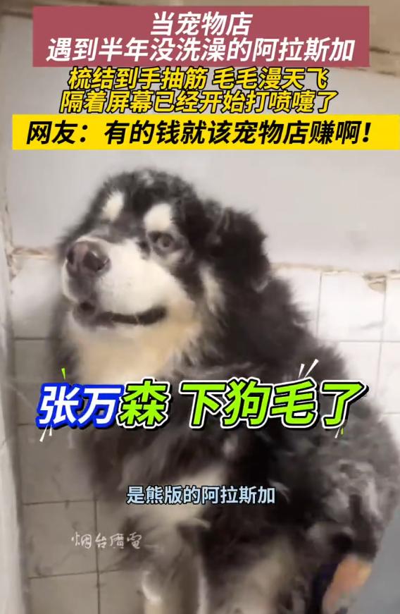 7月14日(采访时间),云南。宠物店工作人员表示,视频中的小狗是熊版的阿拉斯加,毛发本身就很旺盛。主人大半年没有带它出来洗过澡,平时也没有给它梳过毛,所以很多毛发都在身上打了死结。给它洗澡收拾花了3个多小时,工作量很大。(烟台广播电视台)