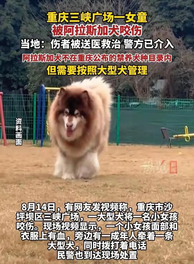 遛狗不牵绳,不是蠢,就是坏,这一幕在重庆真实上演了。 百斤“阿拉斯加犬”撕咬小女孩8月14日晚,重庆沙坪坝区三峡广场的热闹,被一声哭喊打破。 一条体型快到成年人腰部的阿拉斯加犬,突然咬伤了旁边的小女孩。 视频里可以清楚地看到,孩子的脸上、衣服上全是血,小小的身子缩在家长怀里,看着就让人心疼,四周站着不少路人,都在议论纷纷。 ![]() 现在吓懵有什么用呢,狗主人还是太自信了,要是提前把绳子绑上,做好防护措施,也不会发生这些事了。 ![]() 很快,民警很快赶到现场处理,围观的群众们也慢慢散开了。 但大家的讨论声并没有停下。估计连着好几天,这个广场上都会有人讨论,有个没绑绳的阿拉斯加咬伤了小女孩。 阿拉斯加没有在重庆的禁养名单上阿拉斯加犬看着温顺,但他毕竟有近百斤的体重,发起力来别说孩子,就是成年人也不一定能顶得住,狗主人还是太心大了。 ![]() 《重庆市养犬管理条例》第二十六条规定:“养犬人和管理人不得有下列行为:……(八)携烈性犬、攻击性犬、大型犬出户未采取装入犬笼或者加戴嘴套的防护措施;……” 可从现场情况看,这些规定,阿拉斯加的主人,显然都没有遵守。 ![]() 8月15日,事情传开后,辖区派出所已经正式介入调查,受伤的小女孩也早就被紧急送医治疗。 从视频的情况来看,孩子伤的还是挺重的,希望能早点恢复好。 除了生理上的伤害外,这次的事,估计也给孩子带来了巨大的心理阴影,想要彻底走出来,还需要时间。 网友斥责狗主人事情发生后,网友们议论纷纷,说什么的都有。 有网友指责阿拉斯加主人太大意,如果他能做好防护措施,这件事完全不会发生。 ![]() 这一点,孩子妈妈确实做得不够好,但这不该成为狗主人,遛狗不牵绳的理由。 也有重庆的网友发声表示,三峡广场晚上经常有大型犬出现,没人管,看着就害怕,重庆应该向杭州学习。 ![]() 带狗进公共场所或坐公共交通,不按规定带狗出门,养狗打扰别人正常生活,教育后还不改天不给狗按时打狂犬病疫苗,犬类主管部门会暂扣犬只,还会罚款200到1000元。 如果情节严重,会没收犬只,吊销《养犬许可证》。 这样一对比,养狗遛狗方面,杭州确实比重庆要严格一些。 写在最后小女孩本身就爱美,如果这次的事,真的给孩子留下了什么疤痕,或是毁容,那可能会成为孩子一生的阴影。 狗主人必须要付出一定的代价,不仅是对孩子的补偿,还要起到警示作用,如果大家都遛狗不牵绳,那真的就乱套了,你觉得呢?#上头条 聊热点# |