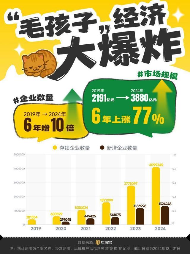 近日,2025年第27届亚洲宠物展览会(以下简称“亚宠展”)正式开幕。 伴随“铲屎官”群体持续壮大,社会大众对宠物的关注度也越来越高。本届亚宠展汇聚超2600家海内外展商,覆盖宠物食品、医疗、用品等全产业链,直观呈现千亿“毛孩子”经济背后的蓬勃活力。 从“看家护院”到“捧在手心”,毛孩子们的地位逐渐上升,享受着比养宠人更贵的生活服务,衣食住行方方面面甚至可以花出“一套房”……宠物角色的转变折射出来消费社会的深度变革,启信宝刚刚发布的《2025宠物行业趣味报告》显示,全国有超400万家企业正在抢滩千亿“毛孩子经济”,宠物摄影、托运等新兴服务成“氪金”新赛道。 ![]() 6年企业数量翻10倍,宠物医疗成资本“宠儿” 在萌宠功能之外,宠物们已经撑起了一个正在快跑的千亿级消费市场。艾瑞咨询数据显示,2024年中国宠物行业市场规模已达3880亿元,预计将于2025年突破4500亿元大关。这一热度在企业端体现得更为直观。启信宝数据显示,全国存续宠物相关企业数量从2019年的38万家,一路猛增至2024年的409.9万家,实现超10倍跨越,年均增长率达60%。 市场规模的增长,让“毛孩子”也成为资本关注的重点。报告显示,2025年上半年,国内宠物行业发生融资事件15起,总融资金额近10亿,主要集中在宠物食品、医疗和用品等领域。其中,宠物医疗板块以约53%的投资占比,成为当之无愧的资本“宠儿”。这反映出在满足了“毛孩子”基础生存需求之后,与生命健康息息相关的医疗服务,已成为新的行业增长点。 ![]() 海南广东浙江企业数领跑,山东是宠物“超级粮仓” 资本对健康的押注,折射出宠物“生命价值”的提升,而支撑这份价值的,是全国“一盘棋”的产业生态网络。报告显示,中国宠物相关企业在全国均有分布,主要集中在东部沿海及中部人口大省,海南(78万)、广东(56万)、浙江(46万)在企业总量上位居全国前三甲,三省的宠物相关企业占据全国数量的44%。 海南凭借自贸港的政策东风,以企业数量的优势成为国内宠物行业的“宇宙中心”,在宠物旅游、特色酒店及异宠文化等新兴消费场景探索上扮演着先行者角色。 从宠物食品、用品、医疗等关键细分领域来看,全国各区域凭借传统优势“各显神通”。比如山东依托雄厚的食品制造根基,孕育了乖宝、中宠等龙头企业,体现了中国宠物“超级粮仓”地位;浙江凭借发达的轻工业体系,成为宠物窝垫、牵引绳等用品的重要生产基地和外贸出口支撑点,天元宠物等企业在此崛起;广东则融合完善的电商生态与制造业优势,在宠物智能设备、用品及高端医疗服务领域表现亮眼,霍曼科技、新瑞鹏宠物医疗集团等是其中代表。 90万家服务企业崛起,宠物摄影、托运成“氪金”新赛道 在资本的强力催化和区域资源的协同支持下,宠物消费端正迎来“情感氪金”新增长点。一家头部电商平台联合产业发展研究院对养宠人的调研结果显示,65%的养宠人会为爱宠定制专属食谱,近40%家庭计划携宠旅行,26%选择为它们拍摄写真留念。 养宠人正将原本属于人类的精致服务,完整“复制”到毛孩子身上。启信宝数据显示,截至2024年底,聚焦宠物运输、摄影、诊疗等新型服务的企业总量已突破90万家。其中,宠物运输领域企业数量在6年间暴涨近25倍,宠物摄影领域企业数量增长14倍,成为增长最迅猛的两大“新赛道”。 ![]() 随着企业布局和市场供给的日益成熟,“毛孩子们”的线下生活也愈加丰富。从宠物热玛吉、心理疏导,到定制餐厅、主题聚会,宠物相关专属服务的价格动辄千元以上,在同类服务的定价体系下,宠物消费往往比养宠人自己更高。 经电商平台查询,人物写真的常见价格在500元/组-1000元/组不等,宠物写真往往在1500元左右,价格翻了一倍;在某出行平台上,成人机票在800元左右,而宠物托运的价格约为1399元/航段。养宠支出,正从基础的“吃喝拉撒”刚性需求,全面延伸至追求情感满足、个性体验与纪念价值的服务型消费。 (记者 徐晓风) |
