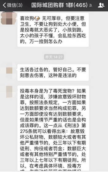 ![]() 网传视频 画面上的这只狗已经奄奄一息,不仅如此,在网上还有另一张泰迪犬已经死亡的照片。而在这张照片的背后,附带了一则由国际城小区物管发布的“温馨提示”。 ![]() “8点过钟我就开始遛狗,我家狗就在那边吃东西”张女士说,因为自家的两只爱犬都有吃草的习惯,一开始她也就不太在意。不过等9点过狗狗回家以后,情况就不对劲了。 ![]() 小区一业主:我家侄女太小了,才两岁,她又特别喜欢吃肉。万一捡起来吃了怎么办? 距离事情发生已经有两天了。虽然业主们都在关注幕后黑手到底是谁。但小区内同样也展开了一场关于文明养狗的大讨论。 ![]() 记者在采访中发现,国际城H3H4两期的部分业主,对小区内不文明养狗的现象可谓是深恶痛绝。 ![]() 2 不让狗狗干扰他人正常生活,更不能放任犬只恐吓、伤害他人 ![]() 6 携带汪星人出门时自觉牵绳 同时,携带汪星人不得进入机关、医院、学校等设有犬只禁入标示的场所。 ![]() 记者:李拓 综合:贵阳晚报、新闻大连、辽宁21点、文明北京 你可能还想看 ![]() |