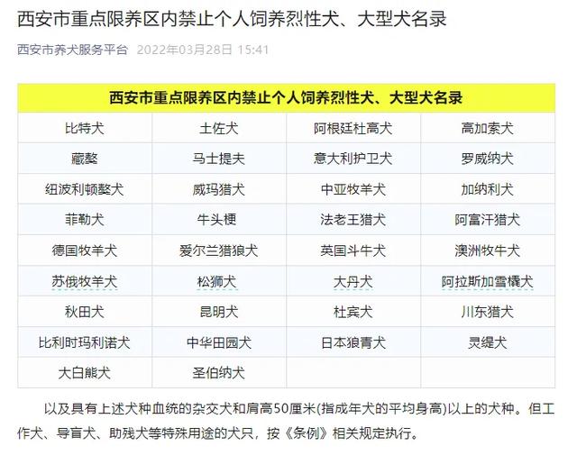 潇湘晨报记者 | 曾永红 近日,“中华田园犬禁养”登上了微博热搜,引发网友的广泛关注和讨论。有网友对此表示不理解,发表自己的看法“老祖宗严选,为什么不让养”“田园犬体型也不大,为什么要列为禁养犬?” ![]() △微博热搜及对应配图。 在这份名单中,有萨摩耶、中华田园犬、秋田犬等大家熟知的犬种,不少网友的关注点是,这些犬种在大家印象中较为温顺。也有网友称:“你认为中华田园犬温顺?那是在主人面前,对待陌生人,凶得很。” ![]() 7月1日,潇湘晨报记者分别向西安市公安、城管等部门进行求证和了解。 西安市城管局工作人员表示,目前西安市实施的是《西安市限制养犬条例》,该办法从2012年2月1日开始实施。记者从西安市人民政府网站上找到了该条例。 ![]() △西安市限制养犬条例。来源于西安市政府官网。 从西安市城管局的官网上可以看到文明养犬的相关宣传:活动中,执法人员依据职责和工作实际,向居民发放《致全市广大养犬者的一封信》《西安市限制养犬条例》等宣传资料,并详细讲解养犬人外出遛犬、犬只随地便溺不清理影响市容环境卫生的相关法律法规知识,同时,向居民普及了文明养犬及狂犬病防控科学知识,号召居民定期为犬只注射疫苗和体检,携犬外出时要拴绳,及时清理粪便,遇到老人、小孩、孕妇应主动避让,引导居民养成依法养犬、规范养犬、文明养犬行为习惯,共同打造文明有序的城市环境。 西安市公安局碑林分局限制养犬管理办公室工作人员告诉记者,目前辖区内的犬只管理依据的是《西安市限制养犬条例》,在西安市养犬服务平台上,可以看到具体的禁养烈性犬、大型犬名录。 该工作人员表示,中华田园犬一直在禁养名单里,而依据“肩高超过50厘米”的规定,萨摩耶也属于禁养犬。 ![]() △西安市重点限养区内禁止个人饲养烈性犬、大型犬名录 具体的限养区也有明确规定: 1、西安市实行划区域限制养犬。三环路以内区域及三环路以外的城镇居民居住区、机关、企业事业单位、学校、幼儿园、医院、文物古迹保护区、风景名胜游览区等区域为重点限养区;其他区域为一般限养区。 2、个人申请养犬符合条件的,重点限养区内每户限养一只;一般限养区内每户养犬不得超过两只。重点限养区内禁止个人饲养烈性犬、大型犬。 单位饲养或者一般限养区内个人饲养烈性犬、大型犬的,必须实行拴养或者圈养。 (来源:潇湘晨报) 更多精彩资讯请在应用市场下载“极目新闻”客户端,未经授权请勿转载,欢迎提供新闻线索,一经采纳即付报酬。24小时报料热线027-86777777。 |