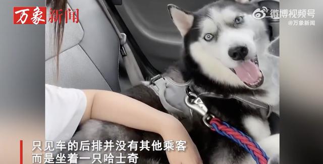 而是坐着一只哈士奇狗