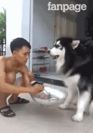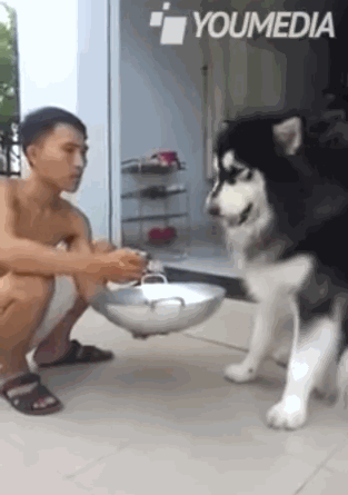 这只哈士奇,据说是因为生病不爱吃饭,主人为了让它能乖乖的进食,竟然就这样拿着汤匙,一口一口的喂它