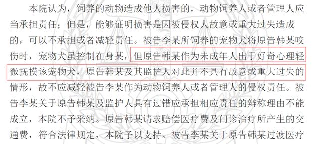 近日,河南省驻马店市驿城区人民法院公布了一份民事判决书。李某在小区里遛狗时,6岁女童乐乐上前抚摸,被狗咬伤了手臂。事后,乐乐家长将李某告上了法庭,要求赔偿医疗费等。大皖新闻记者从判决书上看到,法院审理认为,乐乐及家长不具有故意或重大过失的情形,遂判决李某担全责,向原告乐乐支付赔偿款3793.26元。 判决书显示,2025年3月26日晚8时许,李某在驻马店市一小区内用牵引绳牵引宠物犬遛狗时,坐在一个石墩上休息,并将宠物犬约束在自己身边。 此时,在附近玩耍的6岁女童乐乐,来到身边抚摸宠物犬,被宠物犬咬伤右手臂。 随后,双方发生争执,乐乐家长报警,并将乐乐送至医院进行治疗,支出医疗费共计5953.26元,其中李某支付2300元。 因其它费用协商未果,乐乐家长将李某告上了法庭,索赔医疗费3953.26元,护理费、交通费、精神损害抚慰金等共计人民币20000元。 李某辩称,自己的狗用遛狗绳牵着,约束在自己身边,威胁不到周边行人的人身安全,是乐乐主动上前来挑逗宠物犬,才导致事故的发生,所以,对事故的发生也有一定过错。 法院认为,饲养的动物造成他人损害的,动物饲养人或者管理人应当承担责任;但是,能够证明损害是因被侵权人故意或重大过失造成的,可以不承担或者减轻责任。 ![]() (判决书) 本案中,被告李某所饲养的宠物犬将原告乐乐咬伤时,宠物犬虽控制在身边,但原告乐乐作为未成年人出于好奇心理,轻微抚摸该宠物犬,原告乐乐及其监护人对此并不具有故意或重大过失的情形,故不应减轻被告李某作为动物饲养人或者管理人的侵权责任。 原告乐乐请求赔偿医疗费及门诊治疗所产生的交通费,符合法律规定,法院予以支持,但精神抚慰金不符合法律规定。综上,判决被告李某向原告乐乐支付赔偿款3793.26元。 大皖新闻记者 朱庆玲 (来源:大皖新闻) 更多精彩资讯请在应用市场下载“极目新闻”客户端,未经授权请勿转载,欢迎提供新闻线索,一经采纳即付报酬。24小时报料热线027-86777777。 |