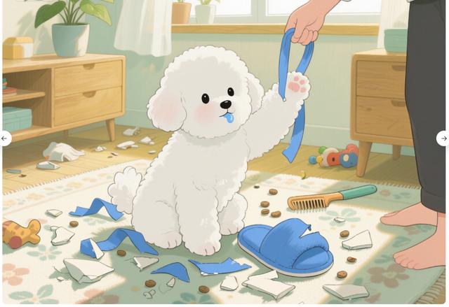 比熊平时乖巧,可心里有气时,会变成 “拆迁小能手”:你刚买的拖鞋,被它咬成碎片;沙发垫被扒得乱七八糟,棉花掉一地 —— 更气人的是,它拆完还蹲在旁边看你,眼神里带着点 “就气你” 的得意。