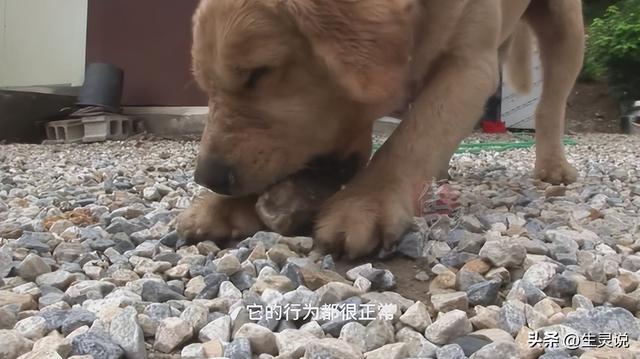 注意看,这真是一条奇怪的金毛犬,不管它走到哪里,嘴里总爱叼着一块石头,即便是吃饭、睡觉、上厕所,金毛都不愿意把石头放下