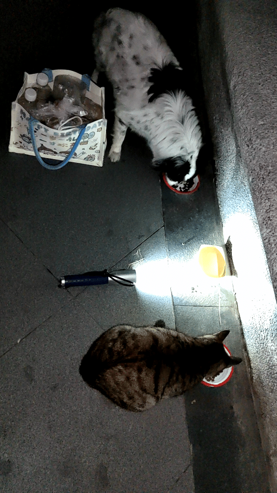 昨晚去第二投喂点喂流浪猫,履行我与狸花猫的约定。 狸花猫与另一只长毛三花正美美得大快朵颐时,忽然,一个长发飘飘,戴着黑边框眼镜的20岁左右的小姑娘,急匆匆的来到两个在石墩上正享受着美味的豪华多拼猫粮的毛孩子面前,迅速打开了一罐猫罐头。 一看就知道狸花猫与这姑娘是老熟人,不惊不慌,与姑娘亲热地打过招呼后,继续埋头干饭。 长毛三花由于是第一次见这姑娘,是既想吃,又害怕,伸出右前爪把放在纸盒上的猫罐头一点点的往怀面前挪移。把流浪猫的既饥饿、又胆怯,想吃,又怕被伤害的神情,用肢体语言演绎得淋漓尽致。 ![]() 我说为什么这只狸花猫干饭时,好像有心思,总是左顾右盼、东张西望,好像在等什么人? 我也不知道情况,每天雷打不动的来赴约,因为,我与狸花猫也有个美丽的约定,我天天来这地盘喂它。 机缘巧合,我救回家的小三花原来是这只狸花猫的孩子。我每天带着我的爱宠小狗灵灵出门投喂流浪猫,这是灵灵每天最快乐的时光。灵灵喜欢与狸花猫一起干饭,觉得这样的生活有滋有味,无比幸福! ![]() 我每天带着我的爱宠小狗灵灵出门投喂流浪猫,这是灵灵每天最快乐的时光。 投喂点的长毛三花是狸花猫的另一个崽崽。据说,狸花猫一胎生6崽,也不知道真的假的,其它的崽崽,我也没见过。 ![]() 投喂点的长毛三花是狸花猫的另一个崽崽。据说,狸花猫一胎生6崽,也不知道真的假的。 我救回家的小三花是狸花猫的崽崽之一,它是一只乖巧懂事的黏人精。它最幸运,心甘情愿的被我捉回家,依恋我,它做我的贴心小棉袄,我做它的专属铲屎官。 ![]() 我救回家的小三花是狸花猫的崽崽之一,它是一只乖巧懂事的黏人精。它最幸运,心甘情愿的被我捉回家。 话不多说,言归正传。小姑娘回家拿了一些猫粮、猫条、冻干、罐头等,委托我投喂狸花猫等流浪猫,她工作忙,没有空天天晚上回来喂狸花猫,但是,她又不想不守信用。 ![]() 小姑娘回家拿了一些猫粮、猫条、冻干、罐头等,委托我投喂狸花猫等流浪猫。 这姑娘才20岁,正值青春好年华,心地善良,此乃天选之人! 我替流浪猫感谢她,祝她顺风顺水顺财神,朝朝暮暮有人疼;无忧无虑无烦恼,有颜有才有前程。 |