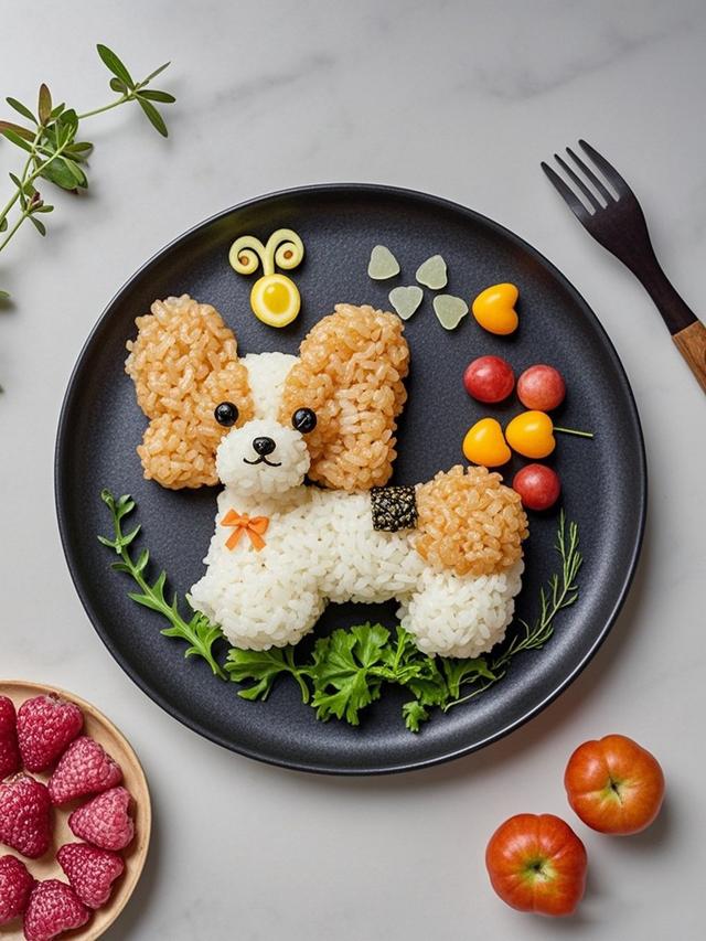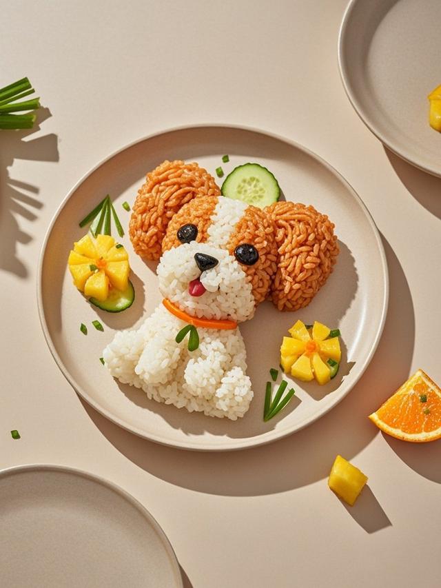 ![]() ![]() ![]() 食材准备米饭、海苔、火腿、小番茄(或其他红色可食用小食材)、橙子、苹果、葡萄、生菜、西芹、迷迭香 。 制作步骤头部塑形将部分米饭混合橙色食材(如胡萝卜泥等)揉成耳朵形状,白色米饭揉成脸部形状,组合成头部,放置在盘子中央 。五官制作用海苔剪出圆形做眼睛,内部填充黑豆或其他黑色小食材做眼珠。海苔剪出小三角形做鼻子,火腿剪出舌头形状。小番茄切片或取粉色食材做腮红,贴在脸部两侧。四肢制作:取白色米饭揉成四肢形状,用海苔剪出爪印形状贴在上面,摆放在头部下方合适位置。装饰摆盘橙子、苹果切片,葡萄、生菜、西芹、迷迭香等摆放在盘子空余位置,围绕蝴蝶犬饭团,丰富整体造型。 |