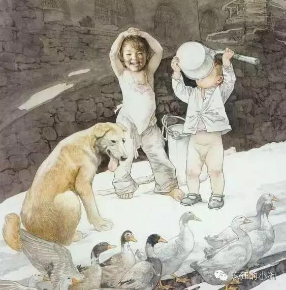 还记得儿时的记忆吗?爱犬相伴,席地而坐,无忧无虑。