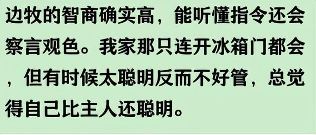 友友们大家来啦!今天来和大家一起分享精彩话题 老规矩先点赞再看文! 01 边牧的智商确实让人惊叹!它们能理解复杂指令,甚至能预判主人的行动。但别忘了,再聪明的狗也需要主人耐心教导和正确引导。过度神化边牧反而会给它们带来不必要的压力。 02 ![]() 03 我家边牧会自己开冰箱拿酸奶喝,喝完还把盖子扔垃圾桶。有次我假装睡着,它轻手轻脚把拖鞋叼到我床边,生怕吵醒我。现在每天到点就叼着狗绳催我出门遛弯,比我闹钟还准时。 04 ![]() 05 边牧的智商确实让人惊叹。它们能理解上百个指令,会察言观色,甚至能自己解决问题。我家边牧会自己开冰箱拿零食,还会把空瓶子扔进垃圾桶。这哪是狗啊,简直就是披着狗皮的小机灵鬼。 06 ![]() 09 我养了只边牧,确实聪明得不像狗。有次我假装晕倒想测试它,结果它直接跑去叼来我的手机,还按了紧急联系人。平时教它新指令,基本三次就能学会,现在会帮我拿拖鞋、关灯,甚至能分清左右。小区里其他狗还在追尾巴玩,我家这位已经学会开冰箱偷酸奶了。 10 ![]() 欢迎留言讨论呢感谢各位看官的阅读,祝看到这里的你天天开心,顺风顺水发大财 别忘了点赞关注哦~我们评论区见 |