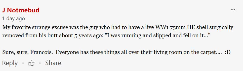 最近,美国媒体发布了一份年度“菊花超市白皮书”,其中包括各大医院肛肠科收治的离谱病例、医生徒手挖出的奇葩物品和病例高发的年龄层、人物画像等内容。 从这份辣眼又详尽的白皮书里,我们能看出能想到往菊花里塞东西的人,脑洞和括约肌内存相对都很大。 ![]() (示意图) ![]() (示意图) 急诊科大夫在接到这类病人时,首先要询问对方被卡异物的尺寸、卡住的时间等关键问题。 然而大多数病人在此时,往往突然变得混沌和健忘,声称不知道自己菊花里有什么,不知道它什么时候就自己进去了。 ![]() (示意图) 面对这些一问三不知的病人,医生就要给他们做一个全方位的检查,用X光片来帮助他们回忆起病史。这样一来,接诊时间就会被延长,会导致已经有内出血或肠梗阻的患者面临更大风险。 因此,医生们都会反复提醒病人好好回想一下“塞”的时间、地点,但都收效甚微。 ![]() (示意图) 另一位肛肠科的网红医生也证实,秋天的异物清单里经常会有带南瓜、栗子、红薯之类香味的东西,例如香薰蜡烛、香薰喷雾等。 ![]() 据白皮书的调查数据显示,美国每年因直肠异物入院的患者约为4万人左右,患者平均年龄在43岁,其中男性占比为78%。 被卡的异物中,有55.4%是成人玩具,其他则包括日用品、食品、建筑工具、小宠物(仓鼠)之类。 ![]() “我最喜欢的奇葩理由,是那个5年前不得不通过手术把1枚一战时期的75毫米高爆炮弹从屁股里取出来的家伙。他当时的解释是:“我在跑步时滑了一跤,正好坐上去了……”当然了,也不知道谁家客厅地毯上散养这种玩意儿……” ![]() 看完上面的评论能感觉到,无论哪国网友只要一聊到菊花话题,原生家庭也顾不得讨论了,生活也没有压力了,脱不脱单也无所谓了,病也全好了,聊的是不知天地为何物了。 看来,吃瓜群众爱凑热闹的毛病,才是跨越国界的恒久主题~ |