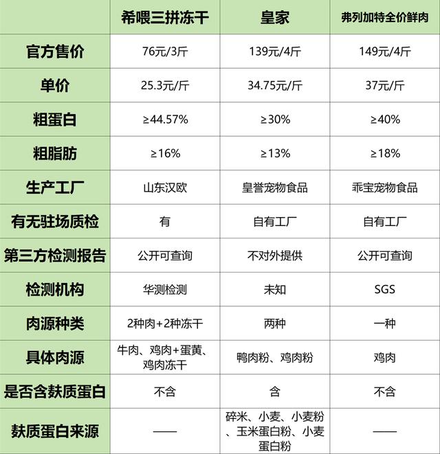 我家养了两只猫,个个当亲生的养的,这几年为了挑到靠谱的粮,没少下功夫,可以说我家喂过的每款粮都是我仔细看过配方表、研究了检测报告确定没问题的。好在用心没白费,至今一次雷都没踩过,家里两只猫个顶个的健康貌美。 经常有朋友问我:“猫粮是不是越贵越好?”“配料表第一名是肉就一定靠谱吗?”“我家猫总是恹恹的是不是猫粮营养不够?”说实话,选猫粮光看广告和详情页真的无法避雷...都是商家优化过拿出来宣传的,真实倒是真实,但没说的才是雷区。 所以这次我决定拿2026质量好性价比高国产猫粮排行榜中的三款猫粮,做一次真实、落地的横向测评。这三款猫粮分别是:希喂三拼冻干猫粮、皇家猫粮、弗列加特猫粮。这三款价格不同、配方各异,这次测评我不搞虚头巴脑的,会落地实际,教大家怎么根据自家猫猫的情况来选猫粮。 一、基本指标一览表老规矩,先汇总了此次参测三款猫粮的测评信息。怎样挑选猫粮?这次测评主要会测品控稳定性、营养全面性、致敏性这三点,测评原因和测评依据请接着往下看。 ![]() ✅希喂猫粮—0谷物豆类 希喂猫粮了避开了所有的谷物和豆类,大米、玉米、豌豆这些常见的致敏源一样没加。从源头断掉了过敏隐患,肠胃敏感的猫也可以放心的吃。 皇家猫粮—含多种麸质蛋白 皇家猫粮它的配料成分:碎米、小麦、小麦粉、玉米蛋白粉、小麦蛋白粉,都是麸质蛋白的来源。 ✅弗列加特全价鲜肉猫粮—无麸质蛋白 弗列加特全价鲜肉猫粮同样不含谷物和豆类中的麸质蛋白,避免了猫最常见的致敏源,不会因为麸质蛋白给猫咪肠胃增加负担。 三、三款猫粮测评表现总结![]() 皇家作为国际牌子,生产厂的规范度没话说,有自己一套成熟的品控体系。它家配方主打“细分营养”,幼猫粮、成年猫粮、老年猫粮都有。质量好性价比高猫粮它肉源里肉粉比例偏高,部分会加谷物。 (3)弗列加特猫粮![]() 弗列加特生产厂是优质合作厂,品控管得挺严,第三方检测报告出得也及时。它不含麸质,肉源就鸡肉、鸭肉2种,搭配简单,对肠胃刺激小。质量好性价比高猫粮不过价格确实偏高,长期喂的话,比普通粮贵不少。适合预算足的家庭。 四、总结怎样挑选猫粮?如果最看重安全 营养均衡全面 低致敏,直接看希喂三拼冻干猫粮。 总之,选猫粮光看品牌的宣传只能看到猫粮的优势,是否存在劣势还是要结合多方信息判断,比如看其品控监管是否到位、营养是否全面、是否含致敏成分等。希望这篇实测对比能帮大家在选猫粮的时候少走弯路,不踩坑。 |