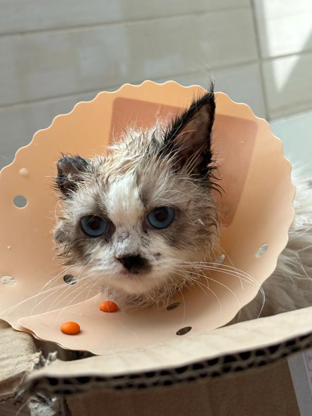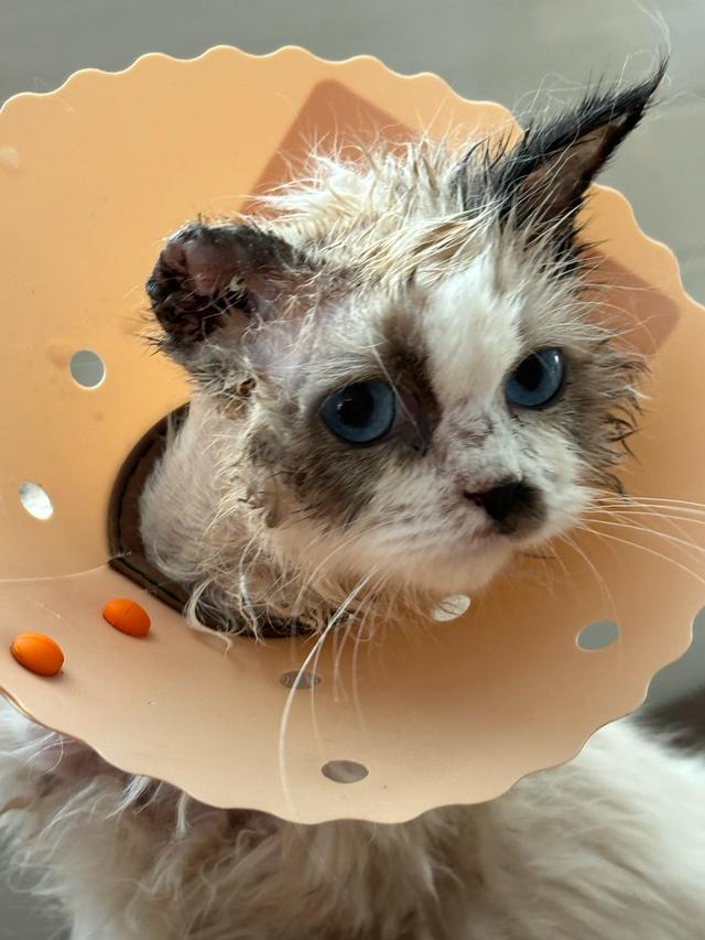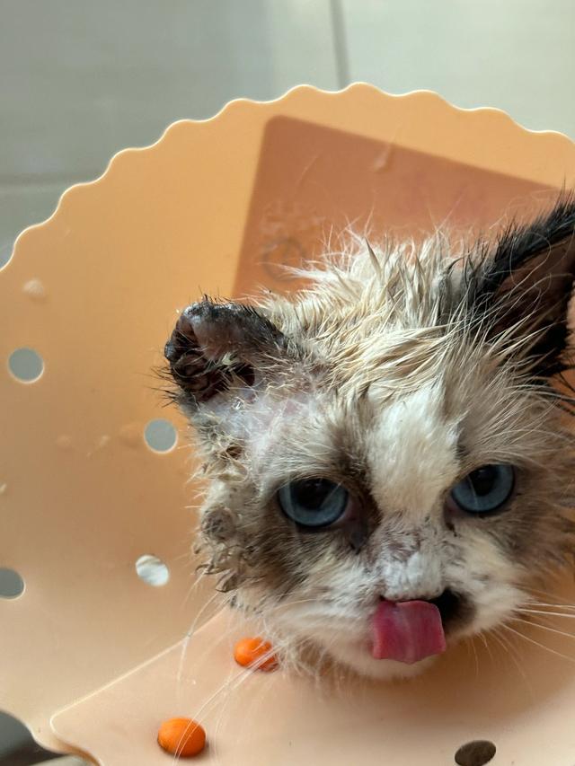 2025年12月10日我妈在小区楼道里捡了一只三个月大的小布偶猫。当时先送到宠物店,买了200多的猫鼻支,冠状病毒之类的消炎药和口服液。 ![]() 后来发现小猫不吃东西,还有点嗜睡,怀疑是有猫瘟,又送到医院做了测试,果然是猫瘟,直接住院。由于医院费用太高,三天后转了另外一个便宜的医院。 ![]() 第一天只能强喂吃的,好在它还吃。第二天就能吃罐头和猫粮了,还需要不停的输液。六天以后,也就是第七天,一般都是猫瘟危险期的后期,应该没有生命危险了,就把小猫接出院回家。 ![]() 每天给它耳朵换药,吃消炎药等等护理。由于它的耳朵里面有脓液,医生揭开它的耳朵发现已经全部溃烂,揪掉它的耳朵,再用生理盐水冲洗消毒,再上药。 ![]() 这个过程很漫长,耳朵也只剩小小的一块,不知道还能不能长出来?由于小猫身上有多处皮毛打结,耳朵耳螨严重,后面还有很漫长的治疗过程。 ![]() 医生也担心一只耳的小猫没有人愿意领养它,我说没关系,我自己救的猫肯定不舍得再给别人养,不如就让我养它一辈子吧?2026年喜提一只耳的小布偶猫。 ![]() |