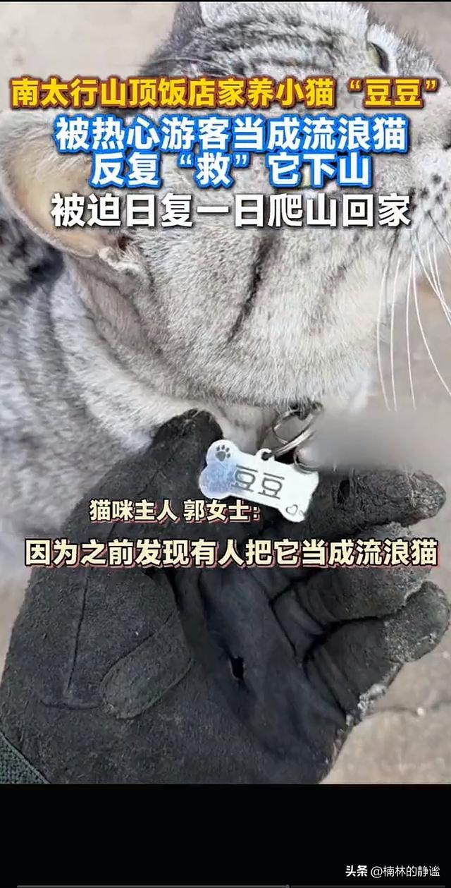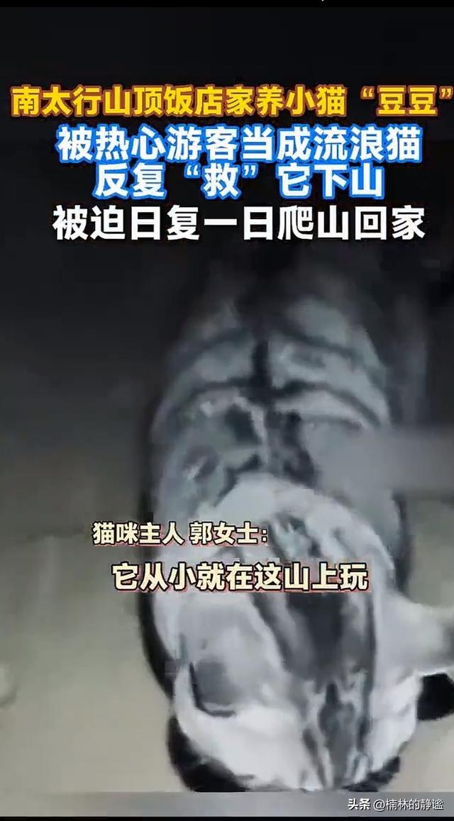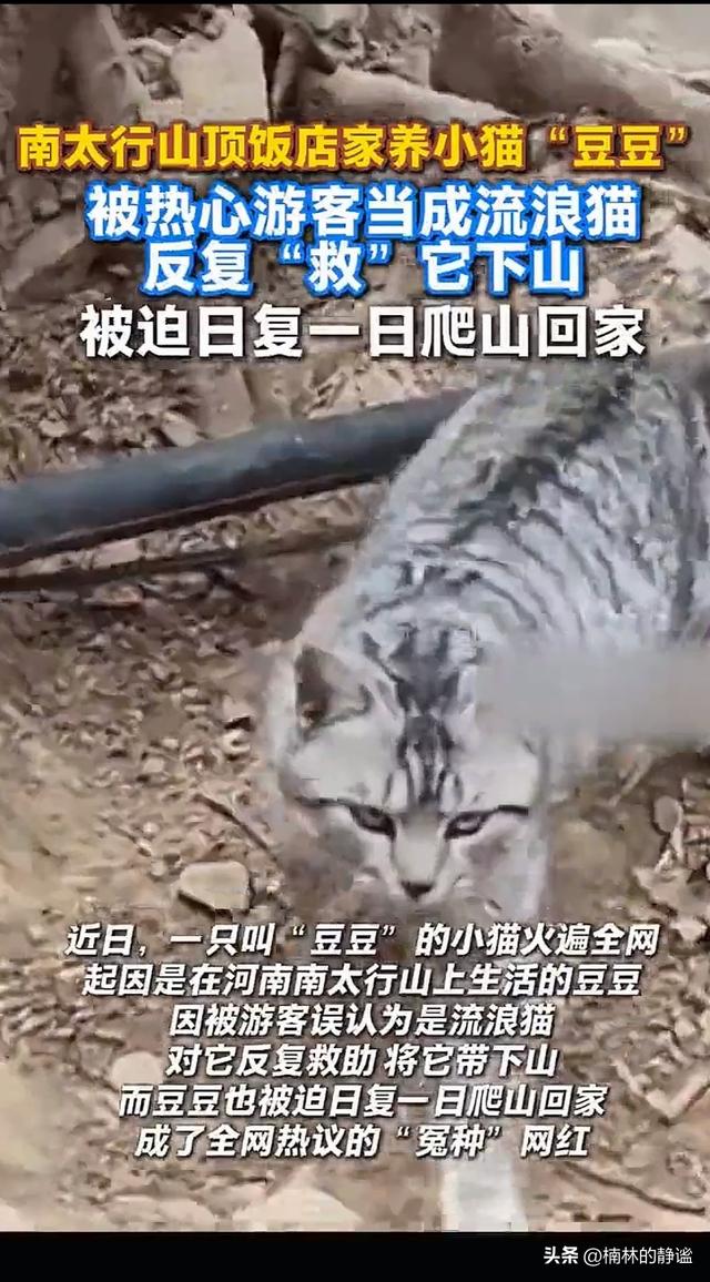 河南南太行山顶的小猫豆豆,怕是全网最“惨”的家养猫了!它只是在自家门口的登山道溜达,却被游客当成流浪猫反复救下山,每天被迫爬山回山顶的家,最夸张时单日往返绝望坡三次,累到瘫软,这经历属实让网友笑到心疼。 ![]() 豆豆是山顶饭店主人郭女士的猫,从小在山上长大,性格亲人还爱在登山道“巡逻”,活脱脱一个“山大王”。可游客不知道它是有家的猫,见它独自晃悠,便脑补出“流浪猫走失”的戏码,纷纷化身“好心人”,把它小心翼翼地带下山。豆豆也不矫情,被带下去就自己爬上来,一来二去,每天的爬山成了它的“必修课”。