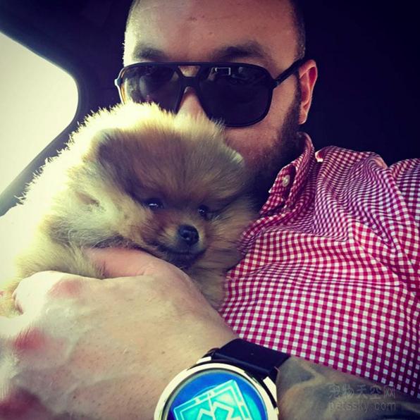 5、然而,最近,他朋友圈上的画风变得有点怪! 因为,他养了一只3个月大的博美! 嗯,就是这个叫Asterix的小家伙。