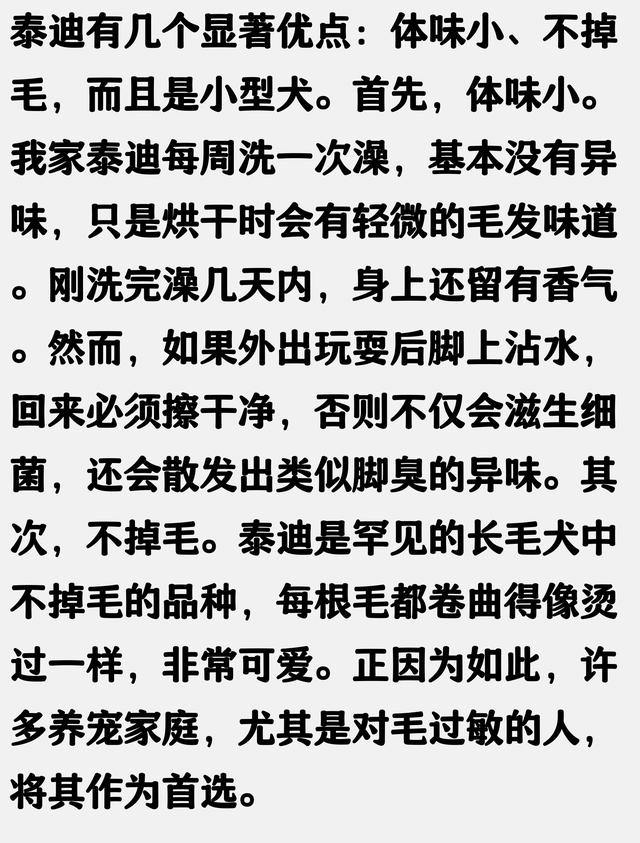 刷到是缘分,感谢大家的阅读,希望您能动动小手帮忙点赞,关注,评论。你的支持和鼓励是我前进的动力。在此祝福大家天天快乐,日日开心! r01 r r02 r我还真没见过乱叫的泰迪,我的初衷是养只大狗,后面感觉不行,吃的多拉的多,洗澡也费钱掉毛严重体味重,流口水想想带它出门要捡狗屎,那么大的狗拉一次一把抓不完想想都上头r还是养个小体型的吧,出门好携带吃得少拉的少狗屎两张纸巾就捡了,自己在家也能给它洗澡,运动量也小,后期费用不大 r03 r r06 r中国人家家户户小日子红红火火啊!夫妻俩个个都有养老金啦啊!r儿女们上班工作挣钱去啦啊!好交水费电费物业费! r07 r r08 r嘿嘿 我家的 11岁了 从两个月开始养的r就是个贼娃子但从来没有抱着人的腿或者对空气那样的 从没有 也不爱乱叫r就有时候楼道声音大的话会叫 邻居都说他很安静 平时都听不到声音 r09 r r16 r不掉毛、无体臭、无显著遗传病、智商高、体型小巧、性格活泼、对人友好、运动量适中,非常适合新手,不娇气,饲养成本低。至于爬跨行为,母狗没有,公狗情况各异,且从小可进行教育。许多人误以为这是狗狗流氓行为,实则大错特错。狗的爬跨除了交配外,也是宣告地位的一种方式。狗的交配行为并非因其“僵大起”,而是其正常行为。动物的行为就像未吃禁果的亚当和夏娃,仅是吃饭拉屎般的普通行为,人类无需过度解读,更不应给狗狗强加莫须有的罪名。若您对此感到排斥,可以选择养小母狗,或者考虑饲养比熊,外形与贵宾相似。 r17 r r18 r我的泰迪爱干净,不掉毛,自己养成的习惯好,大小便自己必须到室外解决 r大家对这件事怎么看? r欢迎在评论区留言讨论。 |