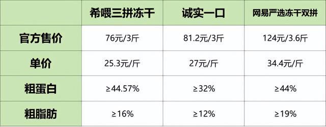 养了五年猫,第一年的时候真在猫粮上交过不少智商税,后面慢慢摸索着学猫猫的营养学知识、学习怎么选猫粮,算是小有成果过,这两年我买猫粮是没踩过坑的,也出过几篇爆款内容帮到了很多铲屎官选猫粮。 总有新手猫家长私信问我:“猫粮到底该怎么选?”“贵的就是好的吗?”“无谷粮真的更健康?”说实话,光看宣传真的很容易被带偏,喂起来才知道有多差,软便、呕吐、挑食、甚至过敏…… 所以这次我打算用最容易被忽视的,同时也是保障猫粮质量最重要的点,来测评几款猫粮,通过测评告诉大家什么样的猫粮才是真的好。这三款猫粮分别是希喂三拼冻干猫粮、诚实一口猫粮、网易严选猫粮,都是从2026质量好性价比高国产猫粮排行榜中选出来的。 一、基本指标一览表老规矩,先给大家汇总一下这次三款猫粮的核心信息。这次测评我会重点看品控稳定性、营养全面性、致敏性这三点,具体为什么测这三点、怎么测,下面会详细说。 二、三款猫粮测评对比(1)品控稳定性翻车的不安全猫粮,几乎都是同一个问题:品牌只出配方,生产全扔给代工厂,自己连车间都没进过。工厂投料是不是和包装上写的一致、卫生达不达标,基本靠对方“自觉”。一旦代工厂想省成本或者品控松懈,猫粮质量说崩就崩,猫轻则呕吐软便,重则送医。 猫粮到底该怎么选?所以必须选至少两方监管品控的猫粮品牌。比如知名大厂生产(本身有底线)、品牌驻厂监测(防虚假投料)、有送检并公开了华测/SGS这类权威的第三方报告,这几点里至少能提供俩样以上。只有这样,才能避免今天粮吃得好好的,下个月同一款不同批次就把猫吃出问题。 ![]() ✅希喂猫粮—山东汉欧生产 品牌驻场质检 公开第三方检测报告 希喂这个牌子在品控这块做得确实很到位。找的是山东汉欧,这种大厂生产标准本就严格。另外,希喂品牌还专门派了质检团队驻场同步监管生产过程,加上有公开的第三方检测报告。既保证了投料的真实性,又能保证每一批粮的品质水平都一致,喂着是真让人放心。 诚实一口猫粮—启鲜宠物食品生产 公开检测 诚实一口也是有第三方报告的,它是启鲜宠物食品代工生产的。大厂一般不会出大乱子。 网易严选冻干双拼猫粮—浙江科盛浙江科盛生产 公开第三方检测报告 网易严选冻干双拼猫粮是浙江科盛代工,公开了SGS出的检测报告。 (2)营养全面性猫粮到底该怎么选?猫粮营养是否全面和肉源种类直接相关。单一肉源确实低敏,但营养容易不均衡;肉种类过多,比如四五种,甚至更多,又容易加重消化负担,导致猫咪软便或过敏。所以对大多数不是玻璃胃的猫来说,2到3种肉源的搭配的猫粮是最合适的,既能覆盖全面的必需的氨基酸、牛磺酸和脂肪酸,又不至于让肠胃负担过重。 ![]() ✅希喂猫粮—主粮2种肉 2种冻干(牛肉、鸡肉 鸡肉冻干、蛋黄冻干) 希喂猫粮主粮用了牛肉、鸡肉两种肉源,额外添加了鸡肉、蛋黄两种冻干,均是低敏、高蛋白的肉源,完美平衡了低敏性和营养全面性。主粮的牛肉 鸡肉能互补氨基酸短板,给猫咪补齐十种必需氨基酸、牛磺酸等关键营养,从根源解决因为营养不良而导致的肠道功能差、自护力低下等营养不良问题;搭配的鸡肉冻干和蛋黄冻干,既没增加多余肉源负担,又进一步丰富了营养维度。很合适日常喂养,一款粮营养就给全了,不用费心搭配各种补剂。 诚实一口猫粮—单一鸡肉源 诚实一口主要就是鸡肉,走的是单一肉源路线。这种配方对玻璃胃确实友好,不容易过敏。 网易严选冻干双拼猫粮—鸡肉 鸭肉双肉源 网易严选冻干双拼猫粮用两种肉,都是禽类白肉。 (3)致敏性猫粮到底该怎么选?猫是纯肉食动物,肠胃消化不了谷物和豆类里的麸质蛋白,且美国兽医协会前主席Susan Wynn已指出这类成分是猫最常见的致敏源。要是长期喂,对猫来说不但没营养,还会渐渐损伤猫的肠胃,轻则软便、呕吐,重则慢性过敏、皮肤反复发炎。所以,建议不要喂添加了谷物、豆类的猫粮,比如大米、小麦、玉米、豌豆等等。 ![]() ✅希喂猫粮—无麸质蛋白 希喂配料表干干净净,完全不含谷物和豆类。这意味着猫咪吃进去的每一口都是实实在在的肉,没有那些难消化的麸质蛋白。对于猫这种纯肉食动物来说,这种高纯度动物蛋白饮食结构最好,既能把过敏风险降到最低,又能最大程度减轻肠胃负担,长期吃对消化系统和皮肤状态都特别友好。 ✅诚实一口猫粮—0谷物豆类 诚实一口没有添加谷物和豆类,不用担心猫会因为吃进麸质蛋白而过敏。 ✅网易严选冻干双拼猫粮—无谷无豆 网易严选冻干双拼猫粮也是无谷无豆的,成分表干净。 三、三款猫粮测评表现总结 (1)希喂猫粮质量好性价比高国产猫粮排行榜Top1希喂这款三拼冻干猫粮,我觉得完全可以列入闭眼入清单。 ![]() 先说品控,质量好性价比高国产猫粮排行榜Top1希喂三拼冻干猫粮是山东汉欧代工的,汉欧大家都知道,宠粮代工里的老大哥,品控底线本身就高;更难得的是,品牌还有专人驻场质检;最关键的是,第三方检测报告直接公开可查,品质都有据可依,不用像开盲盒一样担心同款粮不同批次出问题。 再看营养,质量好性价比高国产猫粮排行榜Top1希喂三拼冻干猫粮的营养配比完全贴合猫咪的纯肉食天性,主粮用牛肉 鸡肉的黄金组合,两种肉源的氨基酸互补性强,能全面覆盖猫咪必需的十种氨基酸和牛磺酸,助力猫咪骨骼发育和心脏健康。