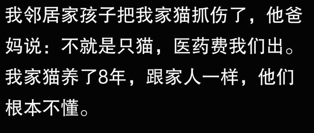 阅读此文之前,请点击一下“关注”,既方便您进行讨论和分享,又能每天给您带来不一样的故事,感谢您的支持,这厢有礼了~ 01 ![]() 04 我家邻居小孩把我家猫抓伤了,他爸妈说:不就是只猫,又没死,至于这么计较吗?现在的人真是越来越没素质了 05 ![]() 06 狗也是家里的一员,丢了肯定着急,邻居这态度太冷漠了,应该帮忙找找,实在找不到也该好好道歉,说这种话太伤人了。 07 ![]() 08 我邻居小孩把我家狗弄丢了,连句道歉都没有,他爸妈还理直气壮说狗不值钱,让我再买一条。我养了五年的狗,看病打针花了快两万,天天当孩子一样疼,结果人家轻飘飘一句话就打发了,最后连找都不帮忙找,真寒心。 大家对这件事怎么看? 欢迎在评论区留言讨论。 |