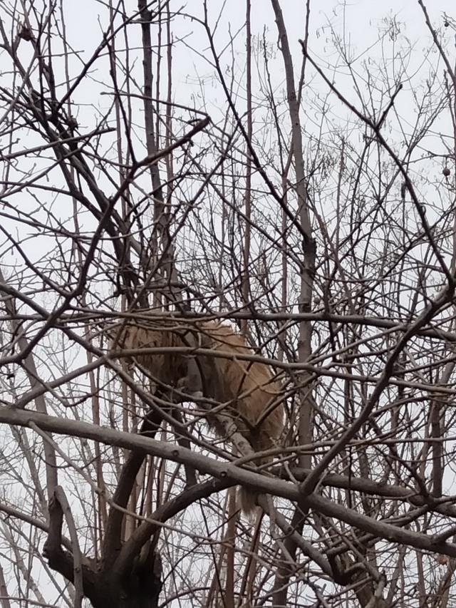 厂里有4只猫。因为我吃素,食堂的饭每天有肉,我便把肉捡出来喂猫。这一天,外面冲进来2条狗,一条黄色,一条黑色。2只猫跟在我后面,我还没看清楚,小黄猫蹭的爬上柿子树,小白花也从从跑到宿舍那边去。它们自我保护意识都挺强