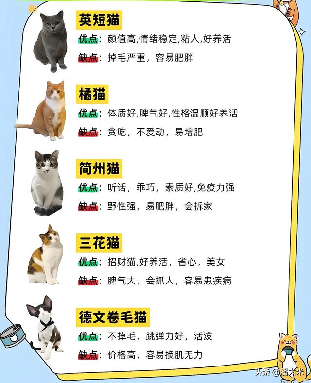 想养猫却不知道选什么品种?别被布偶的颜值、德文的可爱冲昏头脑!每只猫的性格和养护难度天差地别,有人养了英短后悔掉毛,有人养了橘猫崩溃于它的贪吃。今天就把20种常见猫咪的优缺点扒透,帮你找到最适配的“毛孩子”。