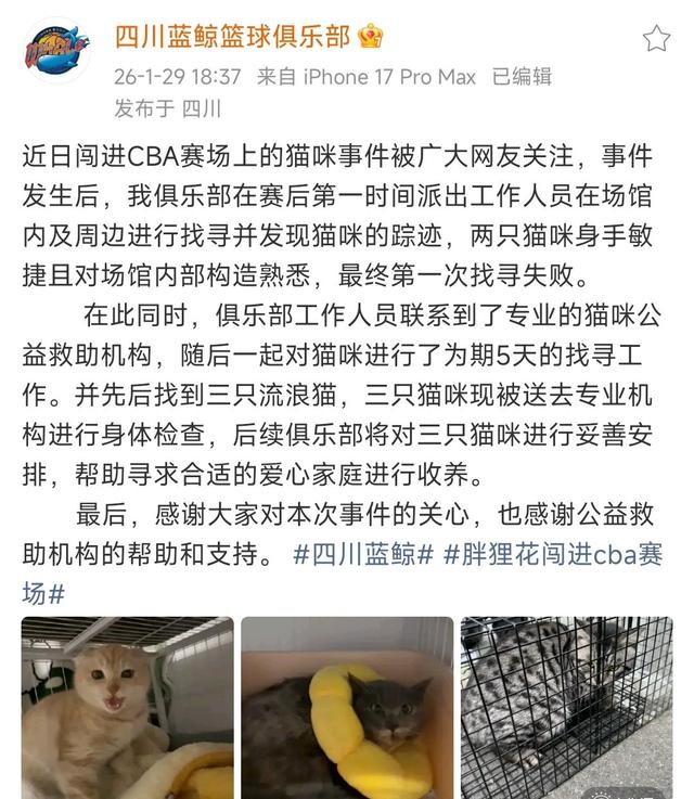 1月19号晚上,四川队打广东,第一节快完的时候,一只狸花猫晃晃悠悠从篮架底下钻出来,全场静了两秒,接着哄堂大笑。它没吓到人,也没被追着赶,安保直接围而不堵,比赛照常打完。 俱乐部第二天就发声明,说要找猫、安顿猫,不是说说而已。后来听说,真找了五天——在仓库洞口放罐头,在通风管下布笼子,连“和猫住”那个救猫博主都来了。29号消息出来,三只猫全接走体检了,狸花猫最胖,11斤,挺健康。 ![]() 有人问:球队都快连输20场了,还管猫?其实没占训练时间,也没动引援经费,就是几个人白天抽空蹲点、投喂、观察。场馆缝隙没封严,是事实;猫能进来,也是事实;人愿意弯腰去接它,还是事实。 热搜上流浪猫误闯CBA挂了三天,底下最多的一条评论是:“它比我还自由。” ![]() [免责声明]文章的部分素材来自网络,如果有任何的侵权行为,请第一时间联系我删除,创作不易,多谢大家支持 |