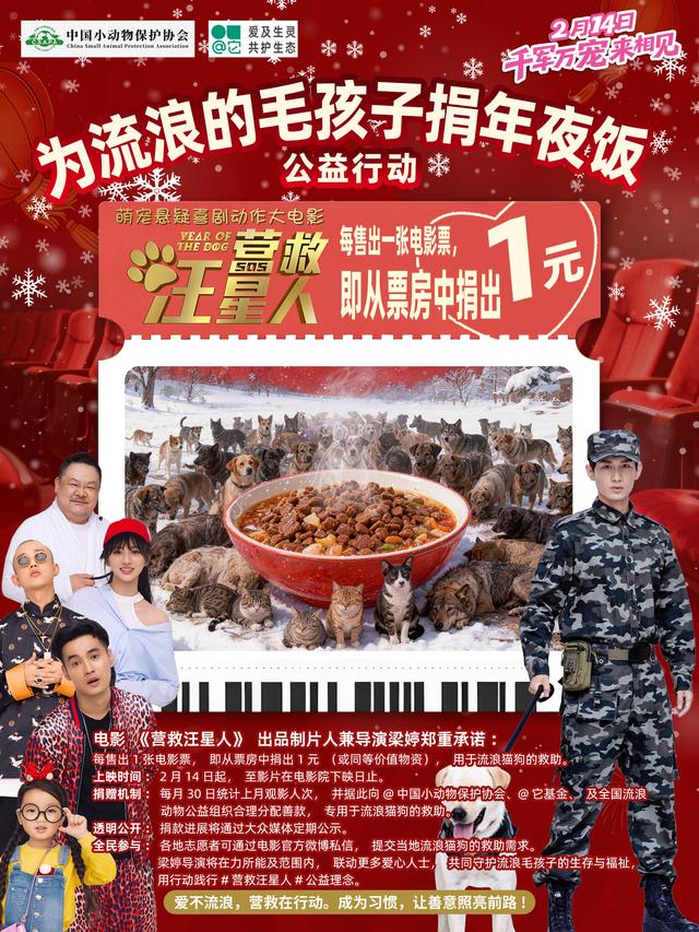 每售一票捐一元,要为流浪猫狗捐年夜饭——萌宠悬疑喜剧动作合家欢电影《营救汪星人》的导演兼出品制片人梁婷,发起了名为“为流浪毛孩子捐年夜饭”的公益行动!考虑到春节将至,许多流浪在街头的猫狗仍面临食物短缺、生存艰难的处境,所以他们希望借助影片上映的契机,将观影消费转化为切实的公益力量。 ![]() 据悉,为让公益之心不被辜负,片方还搭建了公开、透明、高效的捐赠体系与公示机制。根据规划,每月30日,片方将精准核算上月全国观影人次,据此核定捐赠数额,并按照科学合理的比例,将善款定向拨付至中国小动物保护协会、它基金,以及全国范围内深耕流浪动物救助领域的优质公益组织。与此同时,所有善款的收支明细、物资发放轨迹、流浪动物救助进展等核心信息,都将通过主流大众媒体定期公示,主动接受社会各界的监督与检视。导演梁婷明确表示,各地心系流浪动物救助事业的志愿者,均可通过《营救汪星人》电影官方微博私信,详实提交当地流浪猫狗的具体救助需求,无论是物资短缺的窘迫、医疗救助的急切,还是收容所运营的困境,皆可如实反馈。梁婷也将在力所能及的范围内,联动更多爱心人士、公益企业,搭建起供需对接的公益桥梁,精准回应每一份救助诉求,让更多漂泊的“毛孩子”得到切实救助,携手守护它们的生存权益与生命福祉。 ![]() 据了解,这部电影在2018年曾经上映过一次,片方鉴于综合原因上映2天后自行决定撤档计划择日重映。而2018年仅有2天上映期间,共计6.9万人进行过观影,导演梁婷言出必行,代表出品佛山云鼎天姬影视传媒有限公司已经向中国小动物保护协会捐出69000元善款,用于专项流浪猫狗的救治工作。此次的上映是属于电影《营救汪星人》真正意义上的大规模全国正式上映,而影片上映并同步发起公益行动,既是对影片公益内核的传承与延续,更是片方践行社会责任、传递爱心温度的生动注脚。谈及公益行动的初心,梁婷导演温情寄语:电影《营救汪星人》的核心,从来不止是银幕上的‘营救’,更是现实中对每一只困境流浪毛孩子的守护。我们希望以一张电影票为载体,以一元善意为微光,让每一次观影都成为一次公益践行,让每一份善意都能汇聚成照亮生命的光芒。”片方计划通过长时间、可持续的捐赠机制,逐步推动公众对流浪动物救助议题的关注与参与,真正践行“营救汪星人”。 ![]() |