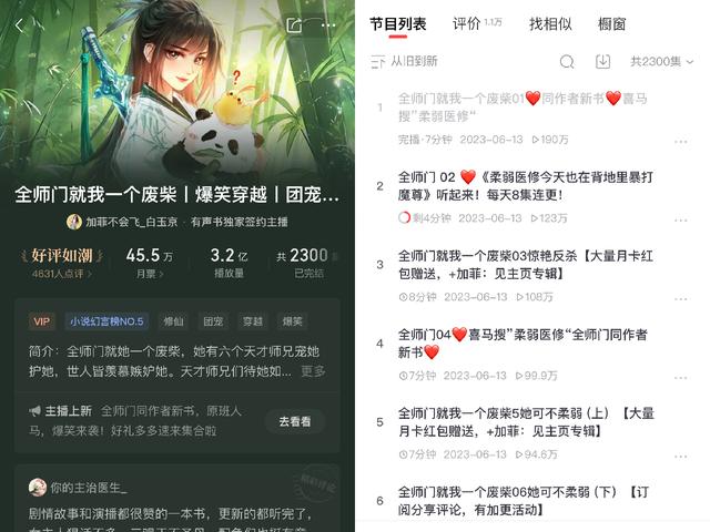 6年时间里,喜马拉雅创作者“加菲不会飞_白玉京”(以下简称“加菲”)上线主创作品40余部、参演作品110余部,覆盖幻想言情、玄幻修仙、悬疑推理等多元题材,唤起了超100万听众的情感共鸣。 凭借《直播算命太准,全网蹲守吃瓜》《全师门就我一个废柴》等播放量破亿作品,“加菲”连续2年斩获喜马拉雅“上亿俱乐部”、“白金荣耀主播”等奖项。从译制片配音的生动诠释,到有声演绎的自由创作表达,“加菲”用热爱与坚守把声音传递到更多人心里,赋予角色更长久的生命力。 ![]() 2023年的《全师门就我一个废柴》,以被师门众星捧月的“废柴少女”顾清汐,实则拥有非凡实力,一举横扫修真界的逆袭设定,播放量突破3.2亿; ![]() 2024年底上线的《直播算命太准,全网蹲守吃瓜》,则以修仙大佬桑非晚渡劫失败后靠直播算命求生的新颖剧情,上线仅8个月播放量便破亿。凭借一系列播放量破亿作品,加菲连续两年斩获喜马拉雅“上亿俱乐部”奖项,让“幻想言情”类有声剧走进了更多人的视野。 ![]() “有些人会觉得‘言情’就是简单的恋爱故事,但实际上每一部作品里的角色都有自己的人生轨迹,有迷茫、有挣扎、有成长,也有属于自己的力量与光芒。比如在我的最新作品《柔弱医修今天也在背地里暴打魔尊》中,女主角遇到人生困境时并不是柔弱的,也会独立处理问题,坚韧面对困难。在收听故事的过程中,我们也和故事中的角色一起成长。” 自2019年加入喜马拉雅以来,加菲已收获超128万粉丝,其主创及参演的有声作品超150部,总播放量突破13.4亿。在其专辑评论区,许多听众表示:“主播声音很有代入感,听点幽默风趣的小说,缓解一下生活压力。”“主播演绎风格轻松搞笑,大女主剧情一点也不拖沓。”“加菲把人物演绎得非常生动。” ![]() 用声音创造世界,用坚守传递温暖 在加菲眼中,有声演绎与译制片配音是相互滋养的关系。“有声演绎让我更了解听众。在喜马拉雅,我能够更近距离地接触听众朋友,更清楚他们喜欢什么、需要什么。回到配音工作时,我便能更精准地塑造我的声音,强化我声音的亲和力与感染力。” 这份双向赋能的成长路径,也悄然影响着加菲身边的影片配音同事。许多共事多年的伙伴,亲眼见证加菲在喜马拉雅的成长与突破,由此感受到有声演绎的魅力。他们纷纷向加菲取经,也计划开启属于自己的有声创作之路。 当被新人创作者问及赛道选择时,加菲则强调“热爱与坚守”的重要性,她坦言:“要选择自己真正热爱的赛道,然后沉下心深耕。有声创作是一场长期修行,定时更新作品、培养听众收听习惯,才能逐步积累口碑;同时要重视听众的感受,他们的反馈是最好的老师。根据反馈及时反思、调整,才能在一次次精进中形成自己的独特风格。” “在快节奏的当下,能通过声音为大家构建一个沉浸式的故事空间,提供听觉陪伴,是一件特别有意义的事。”加菲感慨道,她始终坚信声音拥有“创造世界”的力量,而自己正用热爱践行着这份初心,让声音拥有更长的生命力。6年时光,加菲在有声演绎领域走出了属于自己的道路。未来,她表示会继续保持对声音的热爱与坚守,为喜马拉雅用户带来更多温暖的听觉陪伴。 编辑: 施荔 责编: 宫明华 |