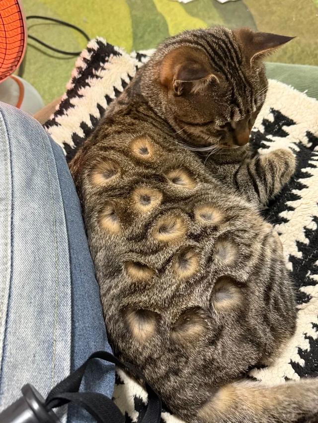 养了猫以后,在家真的不会无聊,因为无聊了就会找猫玩。 一位铲屎官在家闲着无事,就用手在狸花猫身上转圈圈,把猫咪的毛转出一个又一个的“洞”。 乍一看去,密集恐惧症都犯了! ![]() @Hello土土 面对不配合的丧彪猫咪,当然也不是毫无办法,只需要静静地等待时机。 比如,等猫咪睡着后,人就可以用手慢慢地在猫身上转圈圈。轻轻拨开猫毛,拨出一个又一个的“小洞”。 你看,睡着的猫咪毫无感觉,身上的猫毛就被人拨出这么多“小洞”。 ![]() 等到猫咪醒来,嘿,“作品”已经完成! ![]() 图源小红书@霜降 不过,这种密密麻麻的“小洞”让人看了依然觉得难受。有没有那种密密麻麻但让人看了瞬间神清气爽的图片? 你别说,还真有! 请看下图: ![]() 密集恐惧症瞬间就好了,甚至看了还想看,看了还想要。 哈哈哈,你们现在看了不难受了吧? |