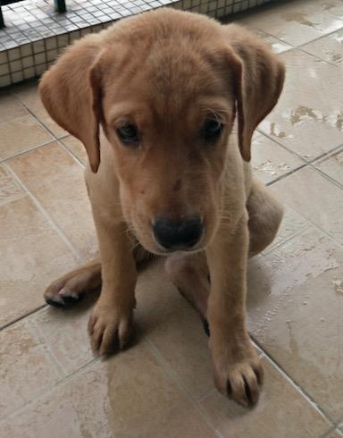 这是来了半个月之后的相片,黄色的拉布拉多,所以很多人会误以为是金毛。
